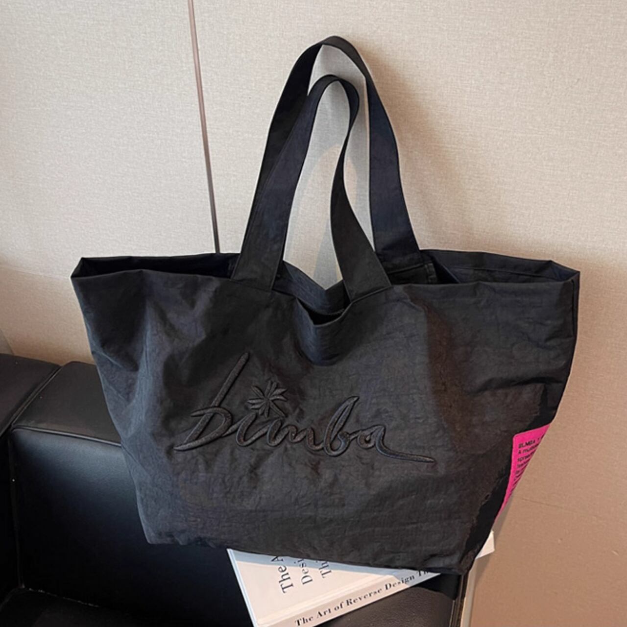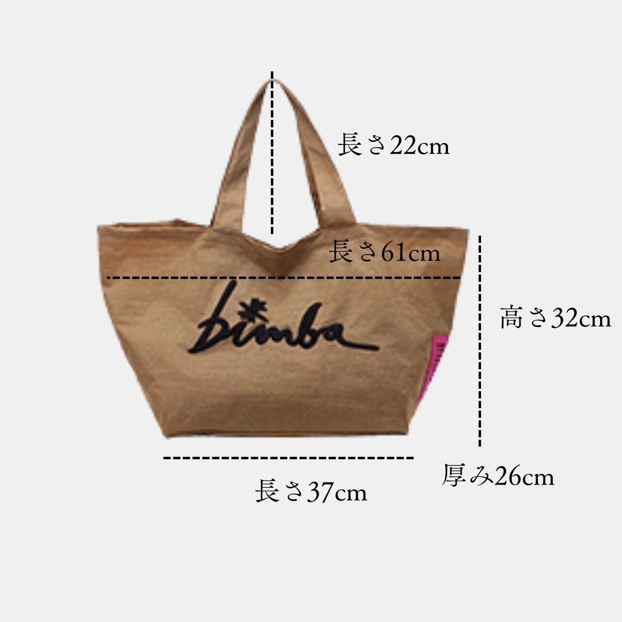 大胆な筆記体の立体刺繍ロゴが目を引く「Bimba Embroidered Tote Bag」。
