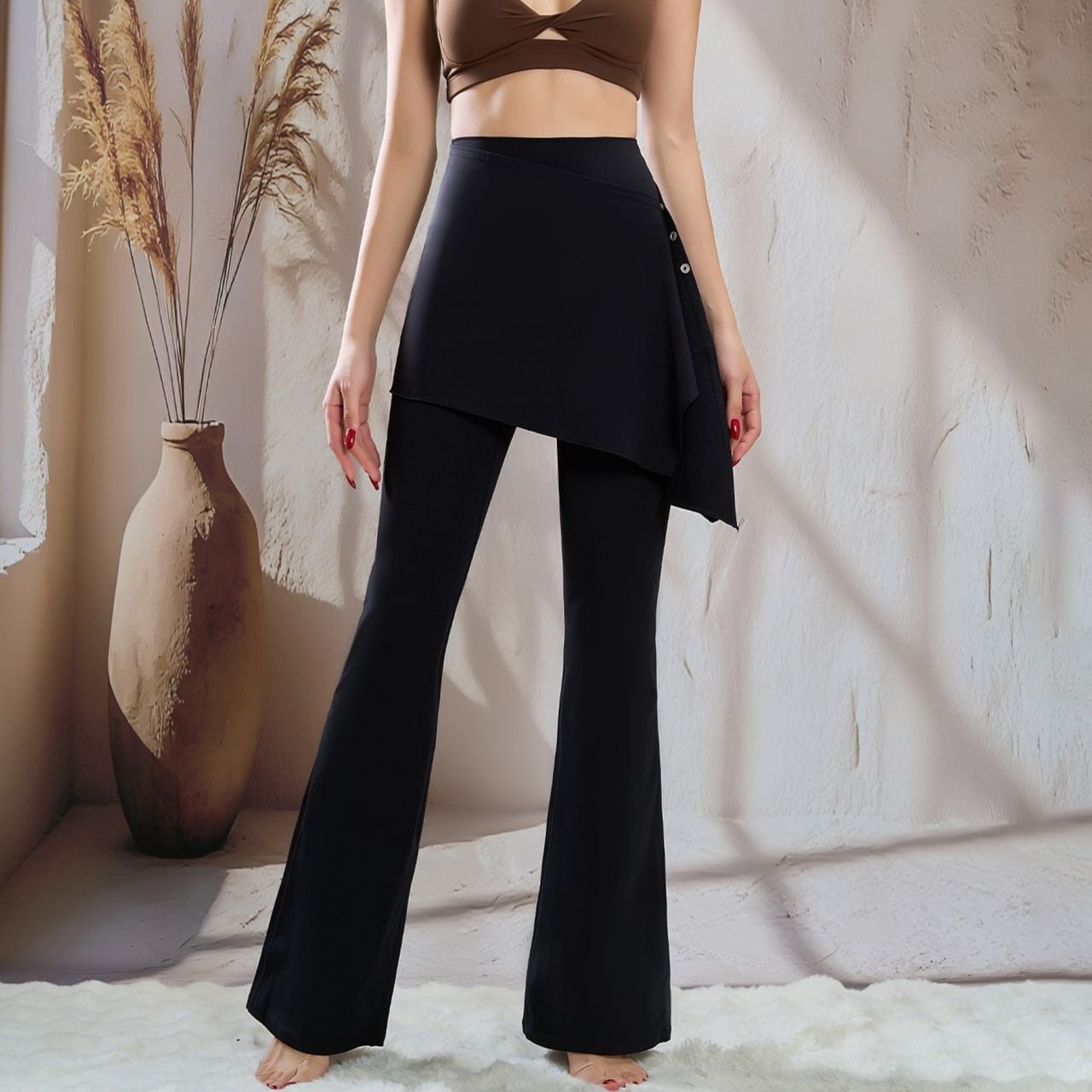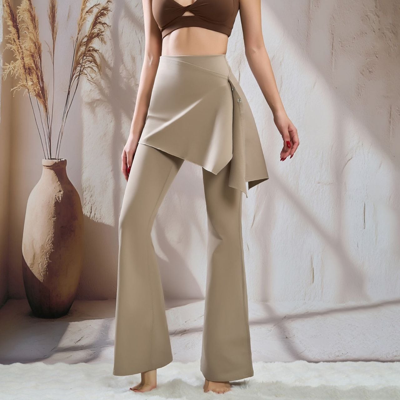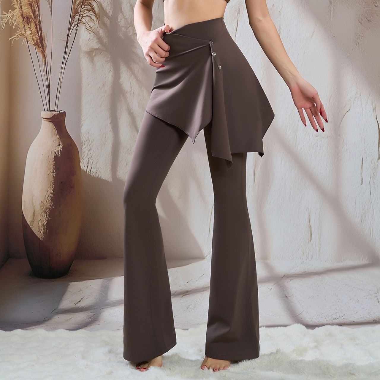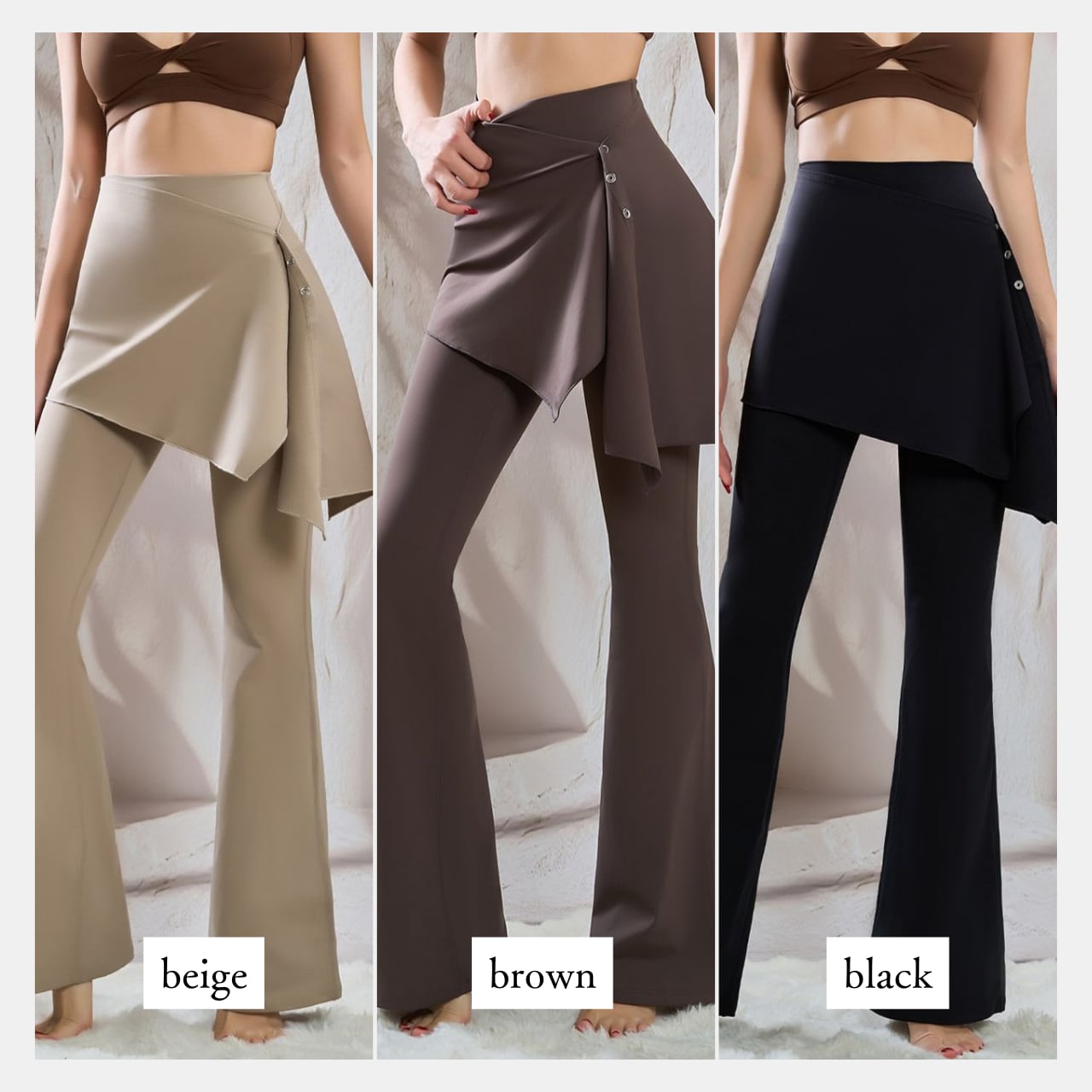 フレア×巻きスカート風レイヤードで、気になるヒップラインもカバー。
