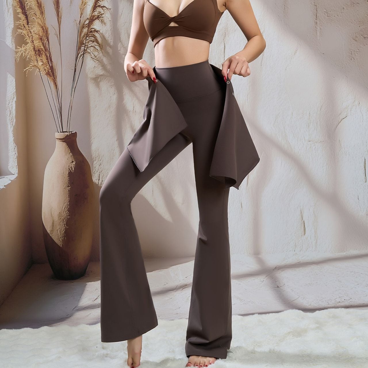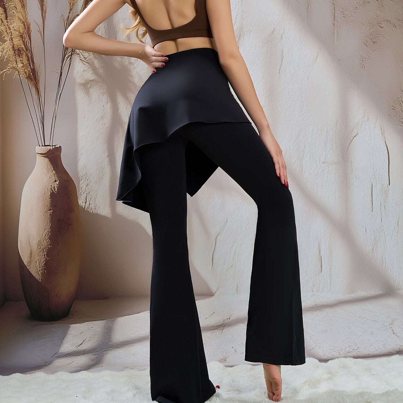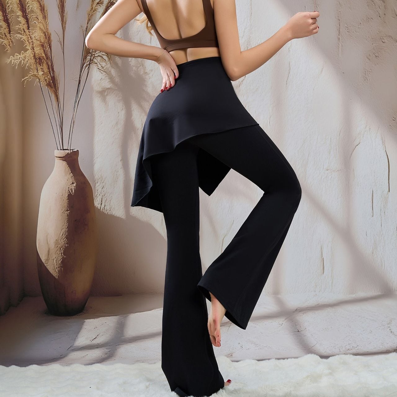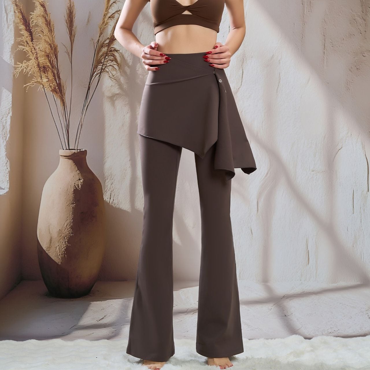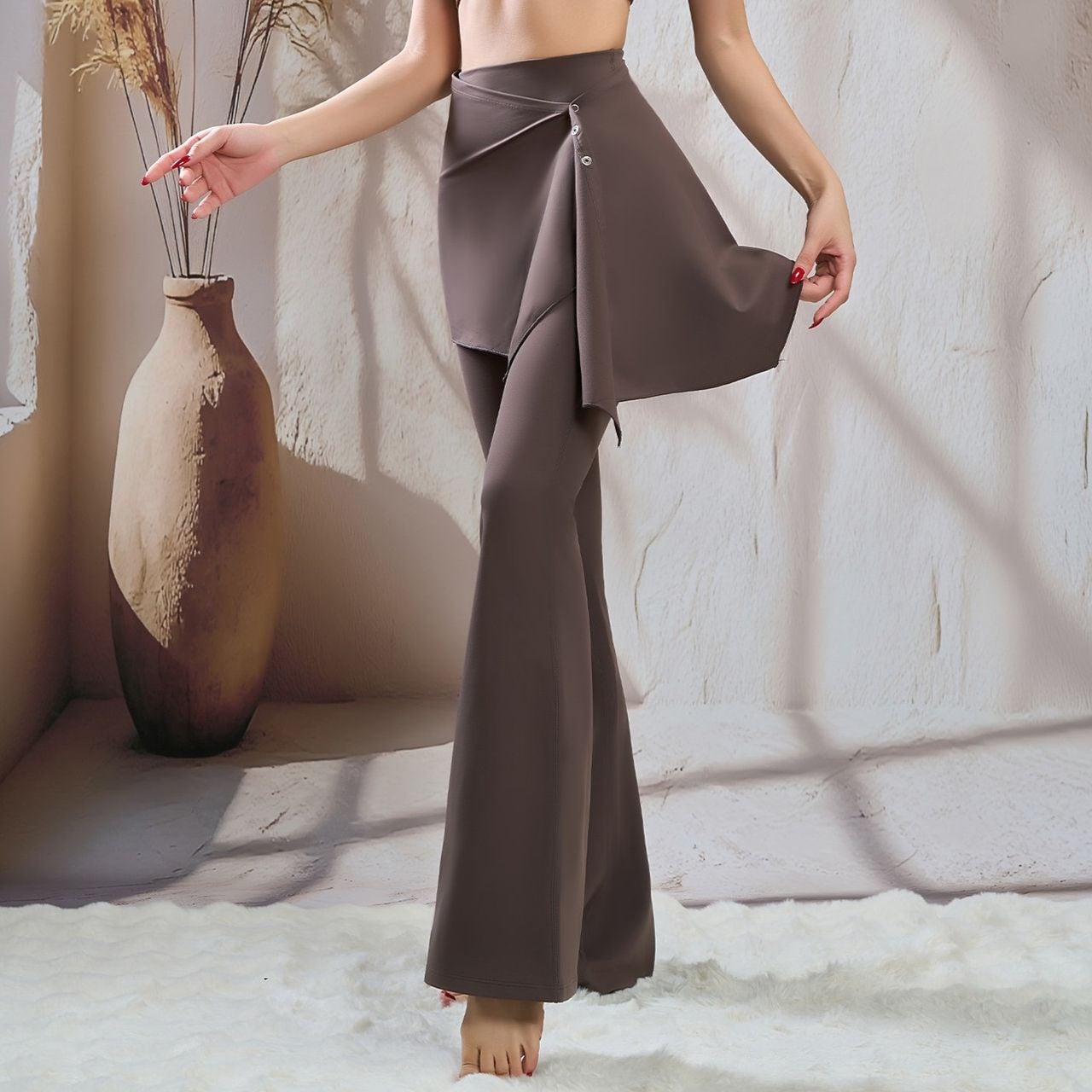フレア×巻きスカート風レイヤードで、気になるヒップラインもカバー。