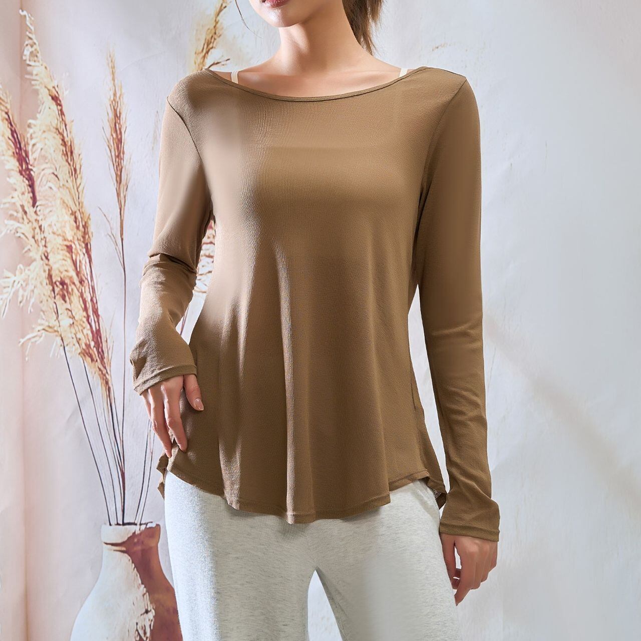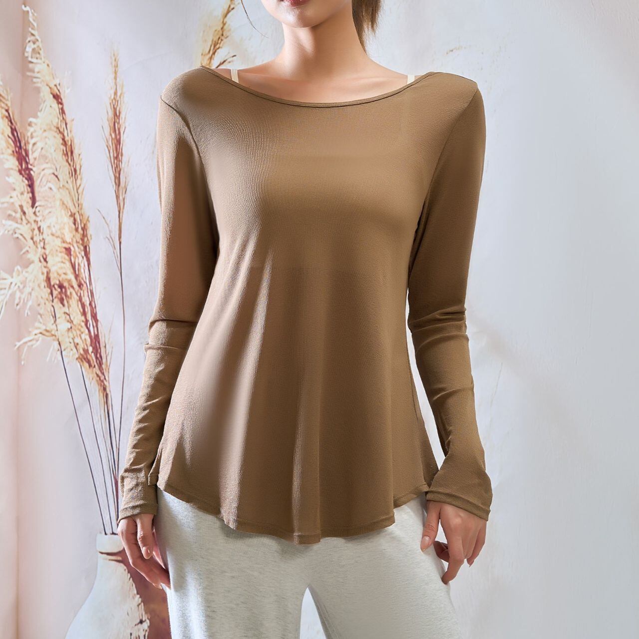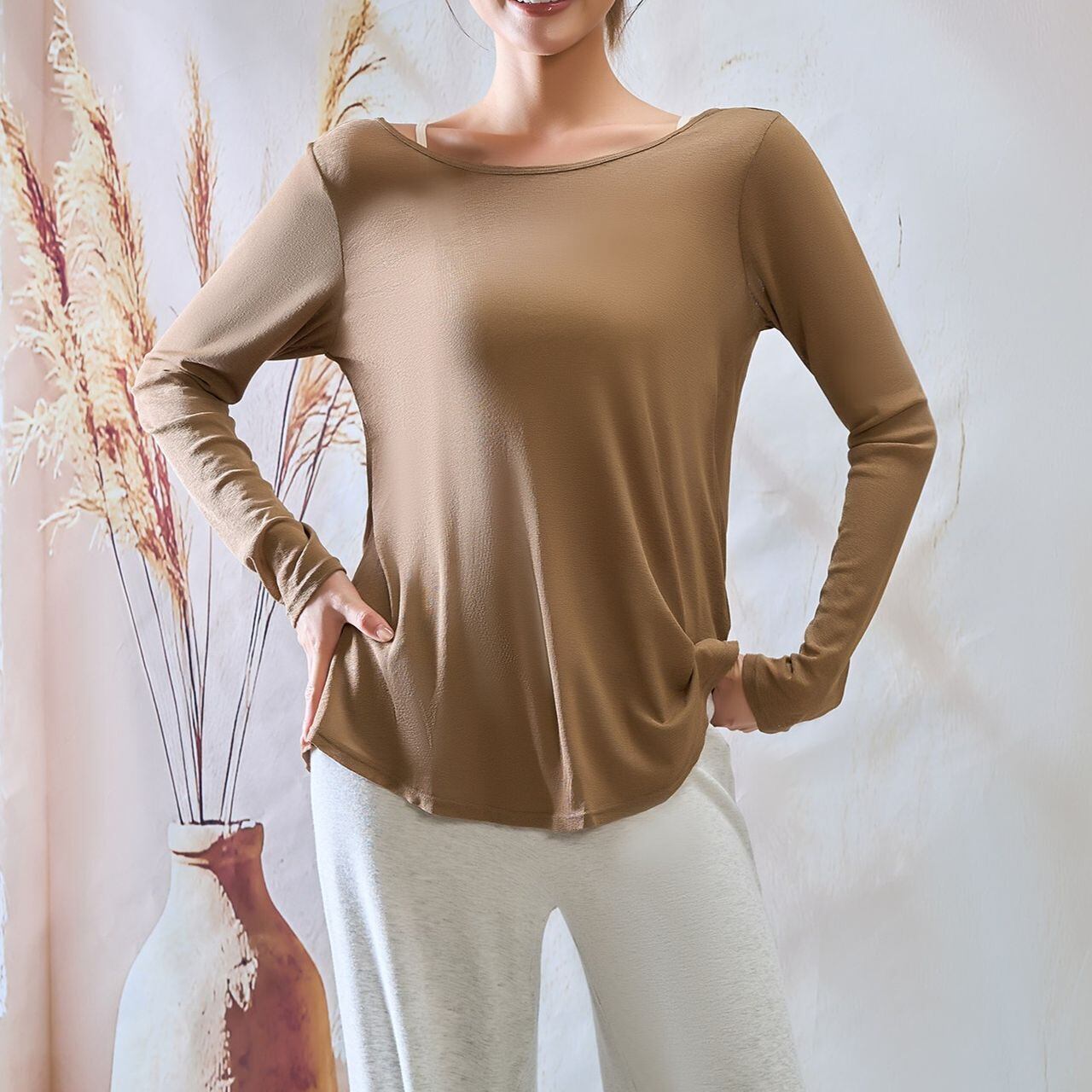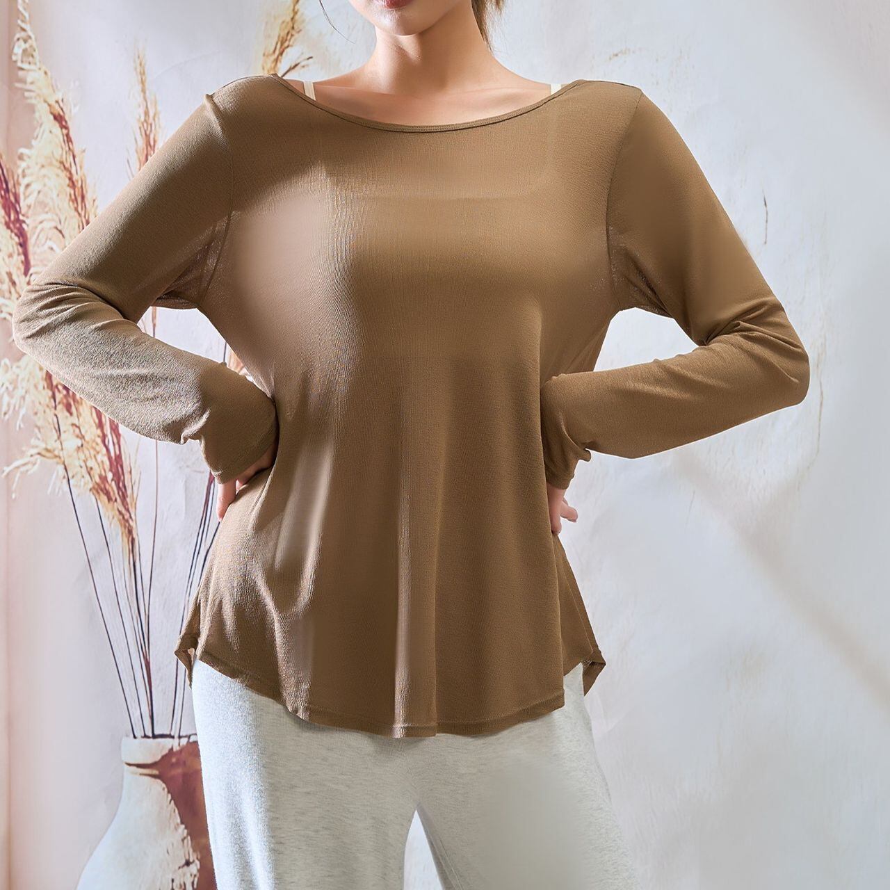 ヒップをふんわりカバーする絶妙な丈感で、リラックスタイムやアフターヨガにも最適。