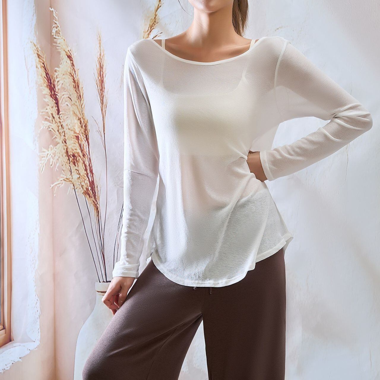 軽やかな透け感が魅力のシアートップス。