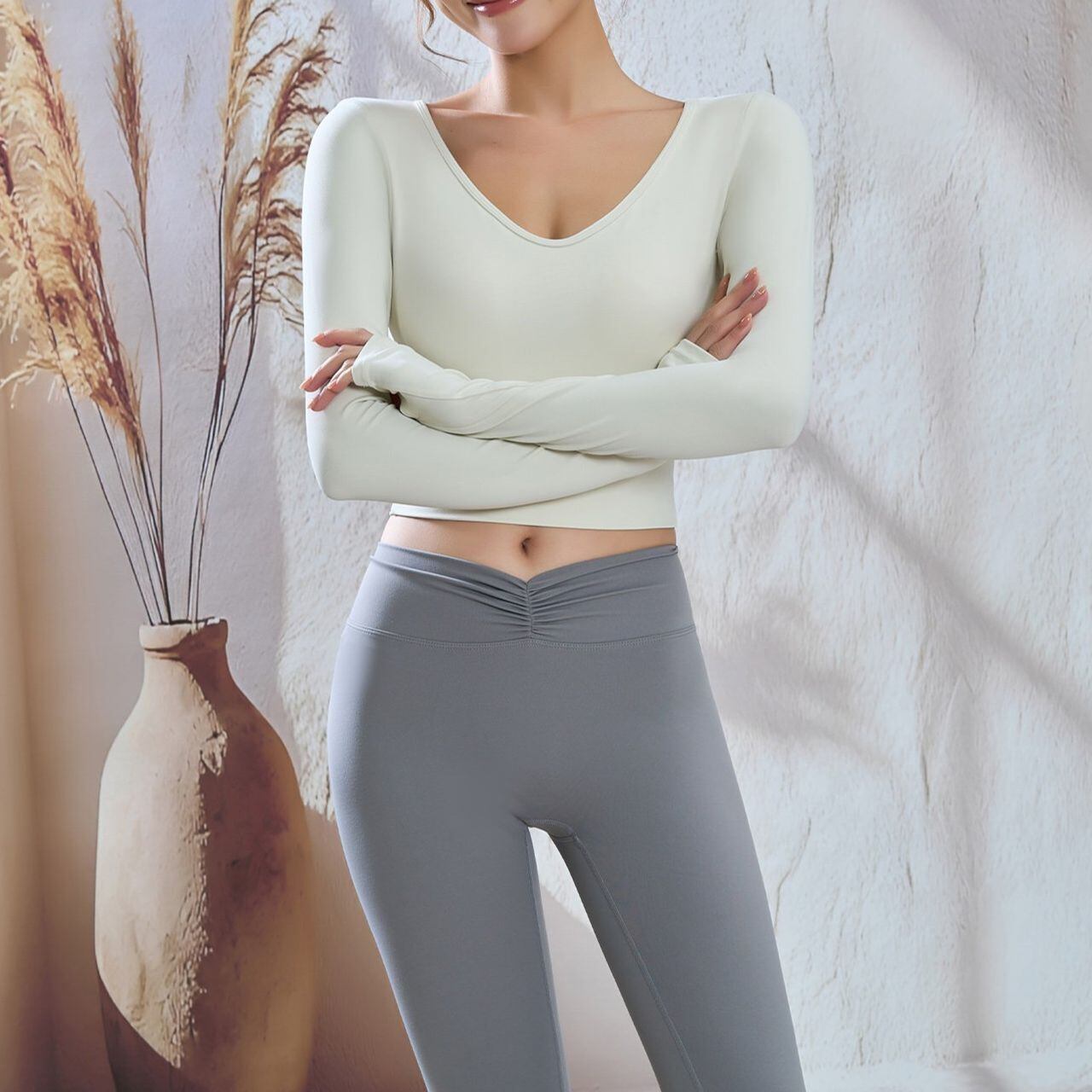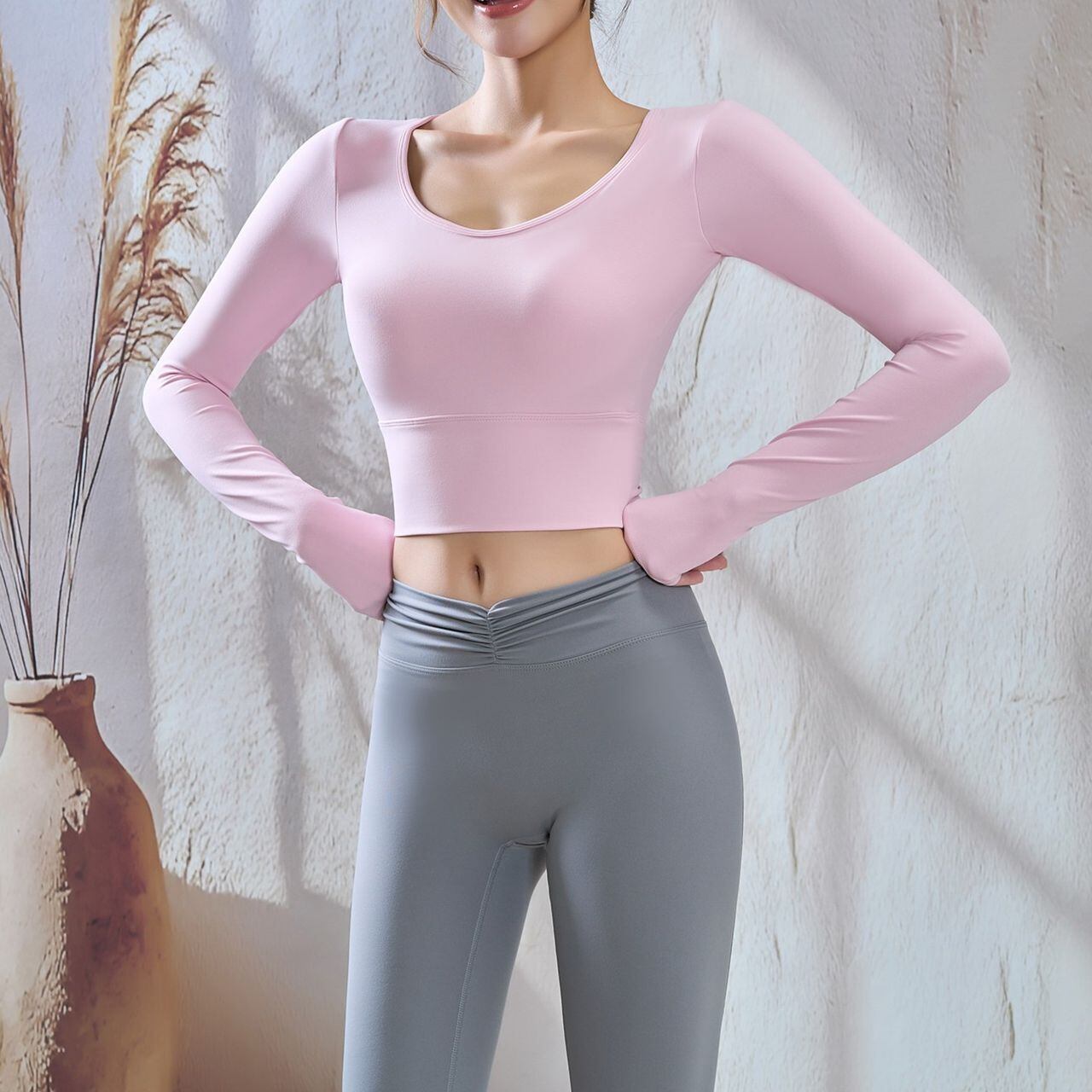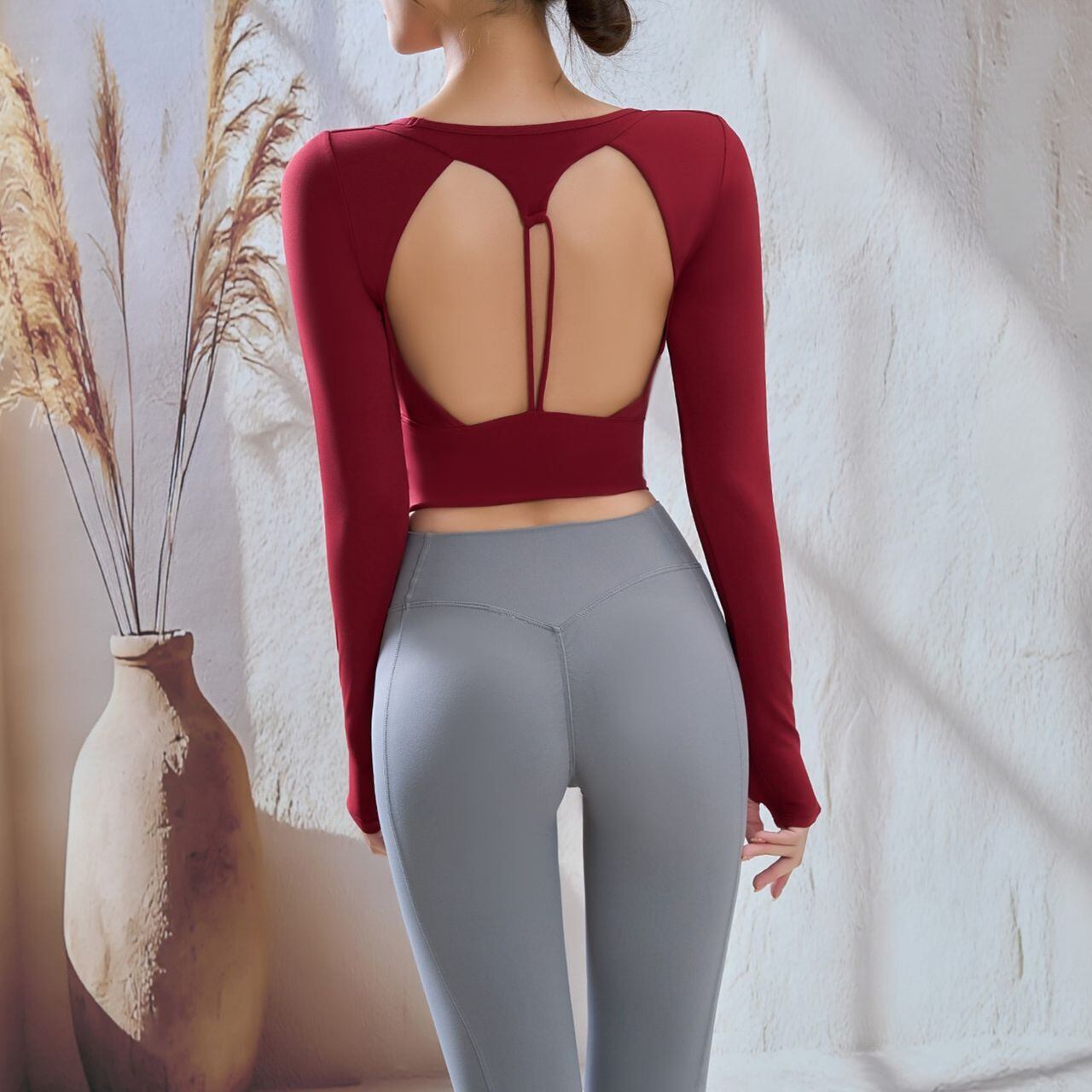 Back Open Long Sleeve Top【4colors】2649