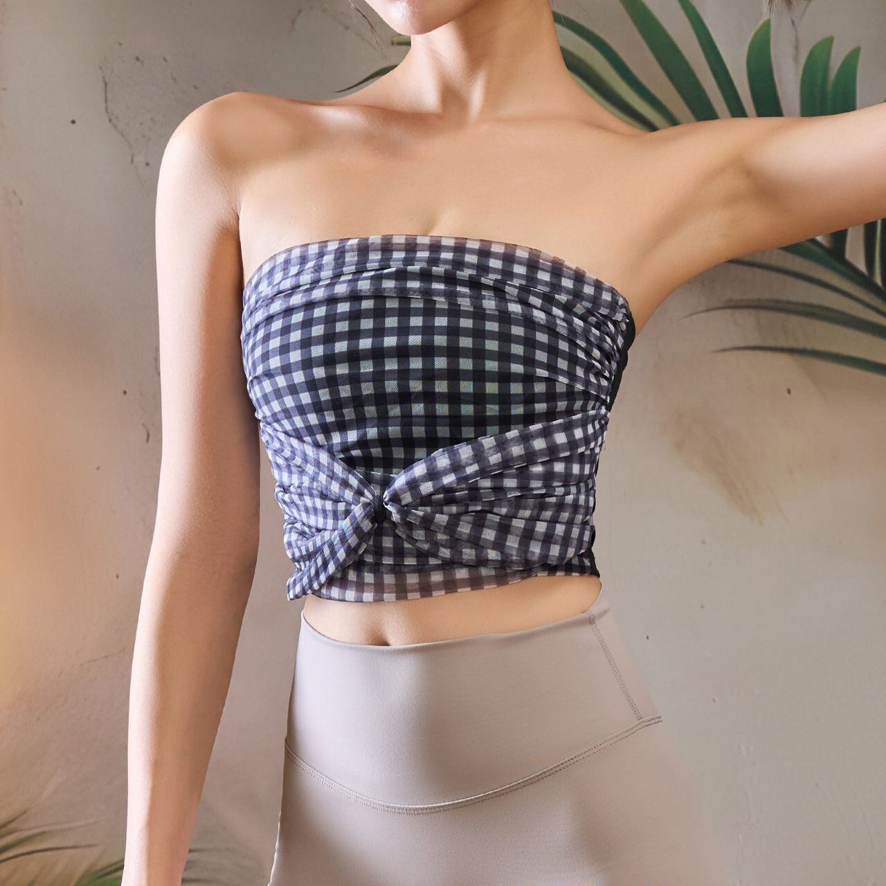 トレンドのチェック柄をツイストデザインでアレンジしたバンドゥトップス。
