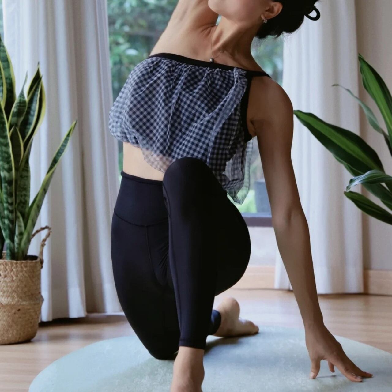 通気性に優れた軽やかな素材感で、ホットヨガやダンス、普段着のレイヤードにもぴったり。