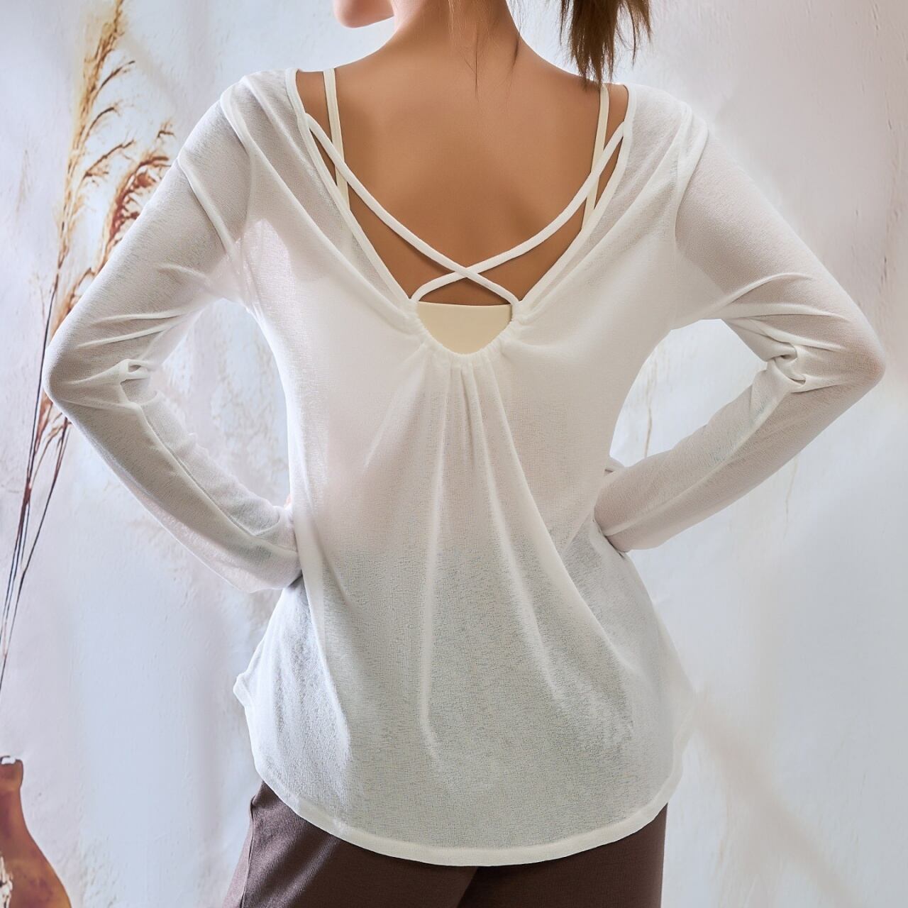 背中にクロスストラップが映える、抜け感のあるシルエットが魅力の1枚。