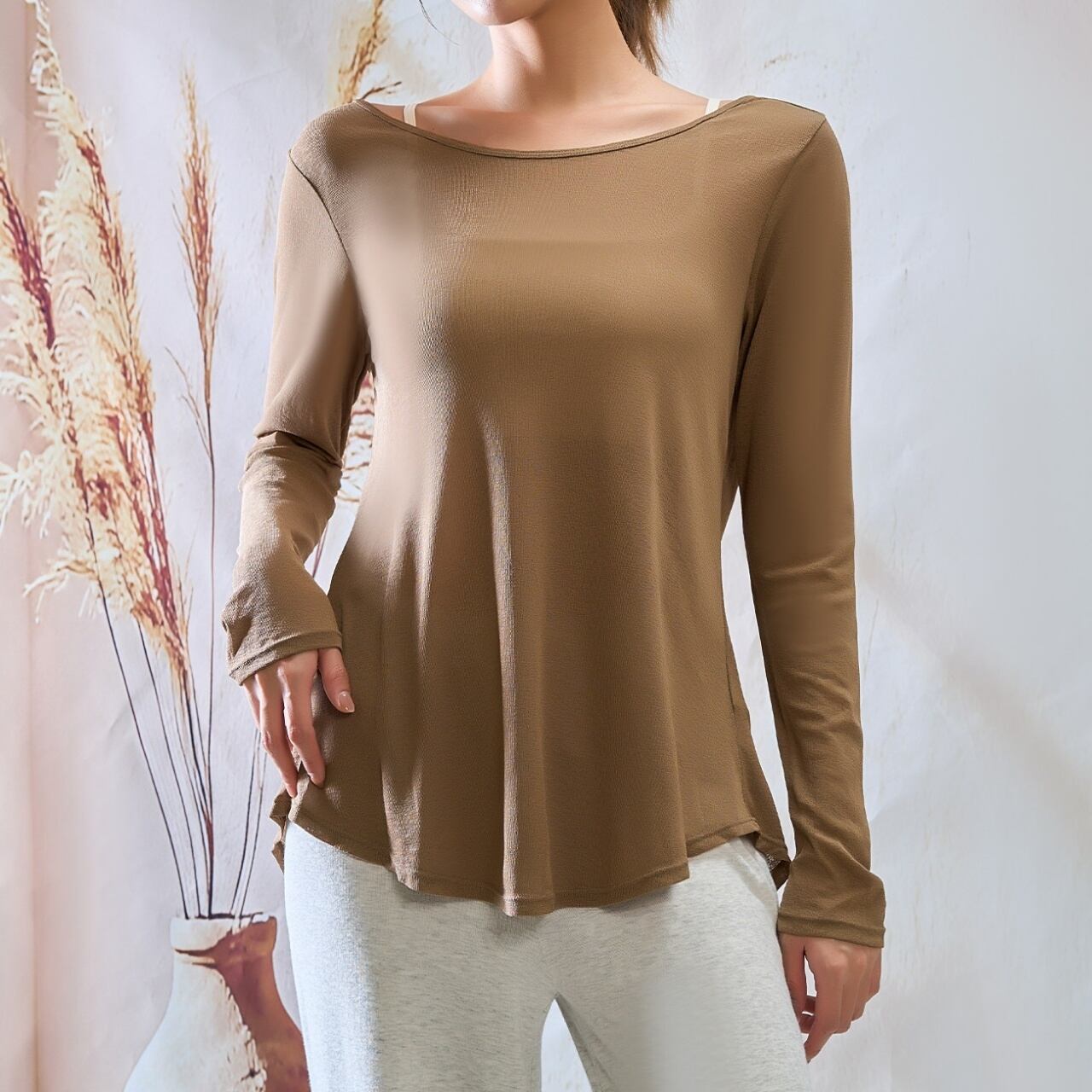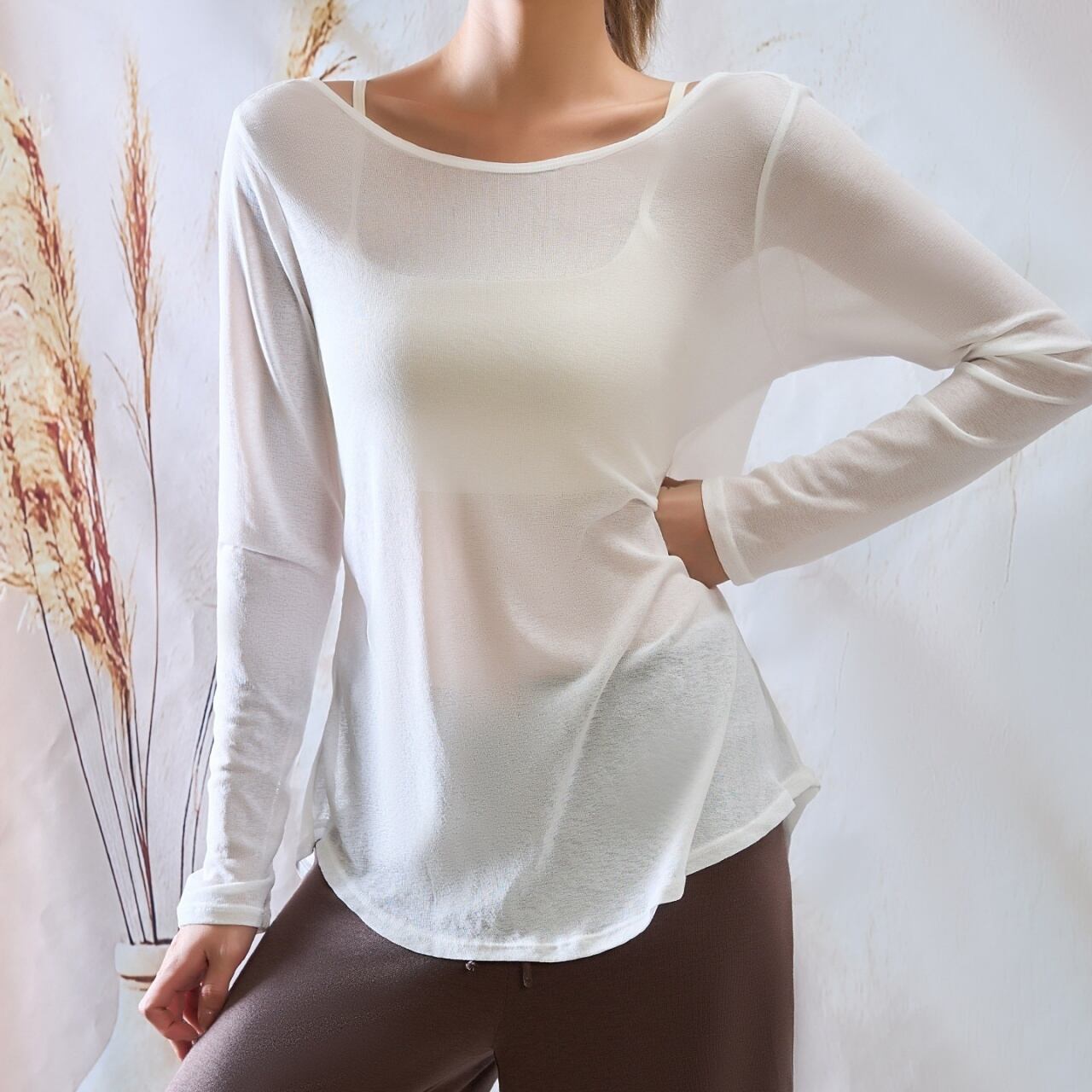 やわらかな素材感とゆるやかなドレープで、レッスン後やリラックスタイムにぴったりなデザインです。