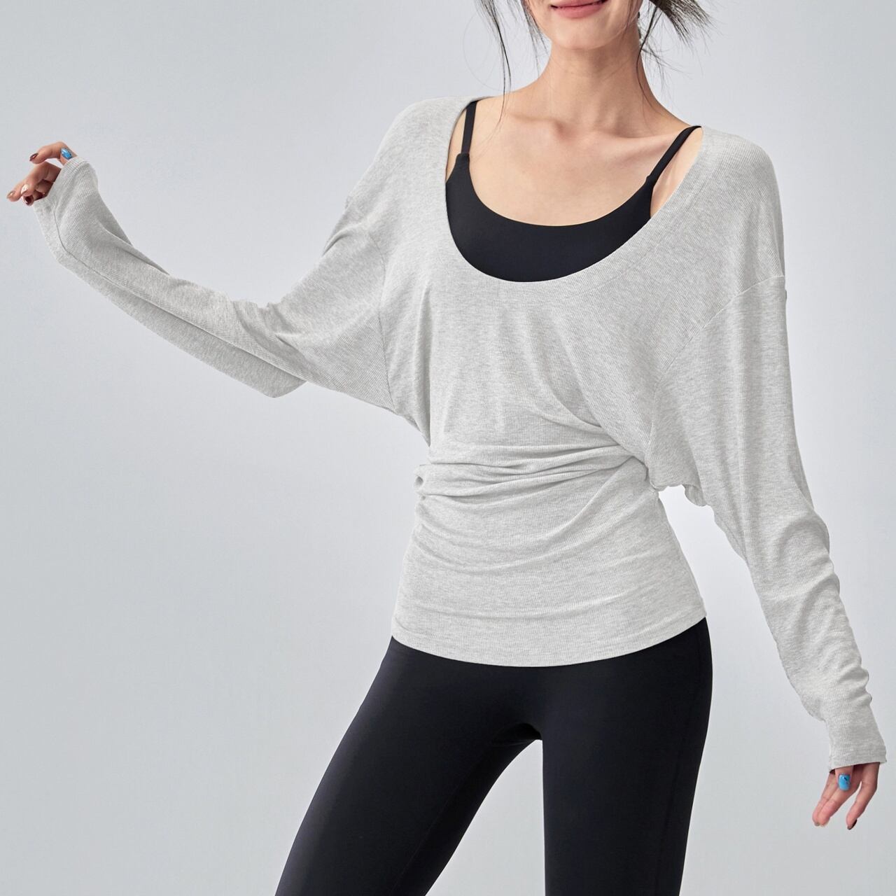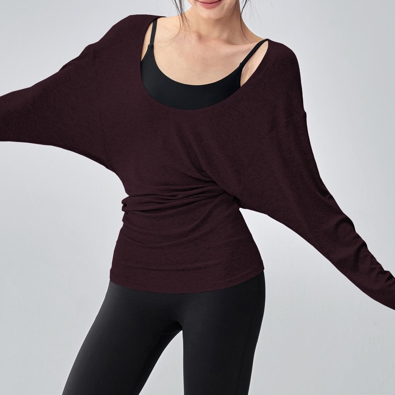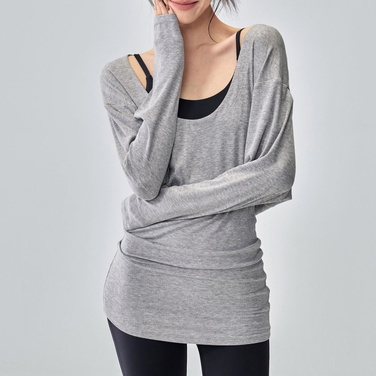 絶妙なゆるシルエットがこなれ感を演出する、デイリーヨガトップ。
