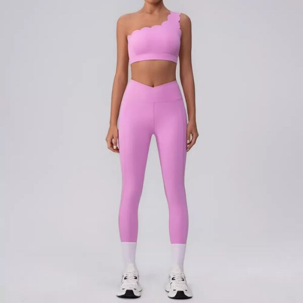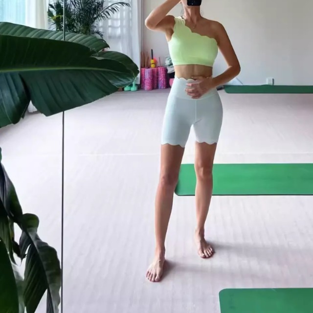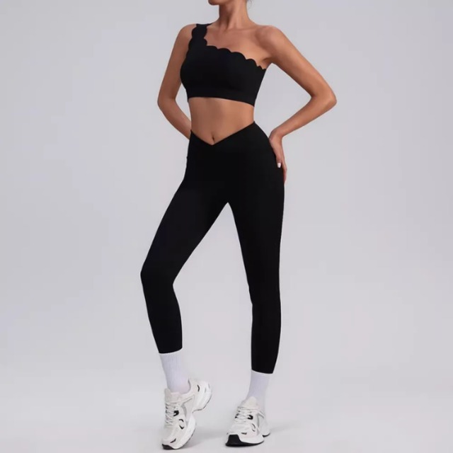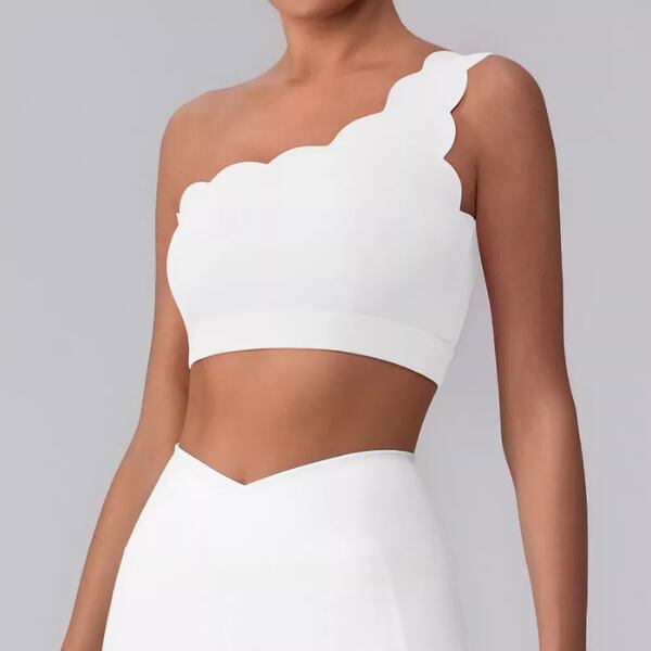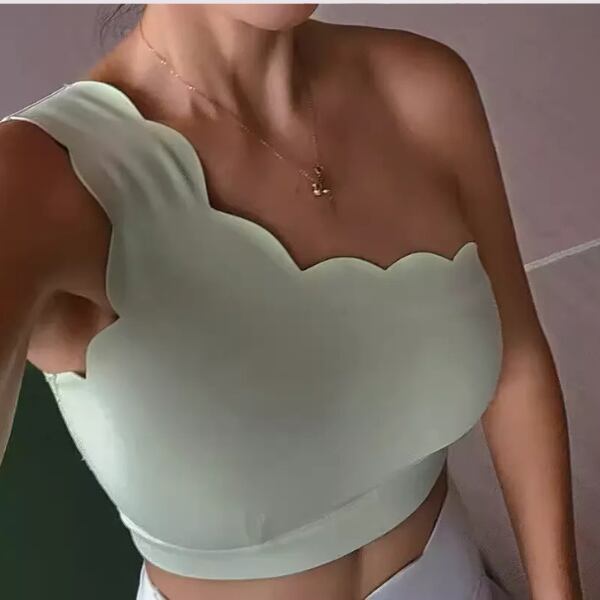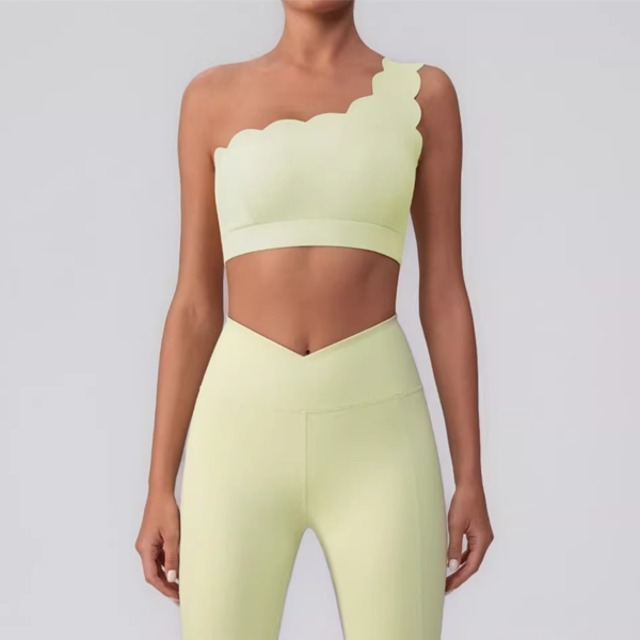 ワンショルダーブラトップ。華奢な肩まわりを演出しつつ、アクティブな動きにもフィットするブラトップです。