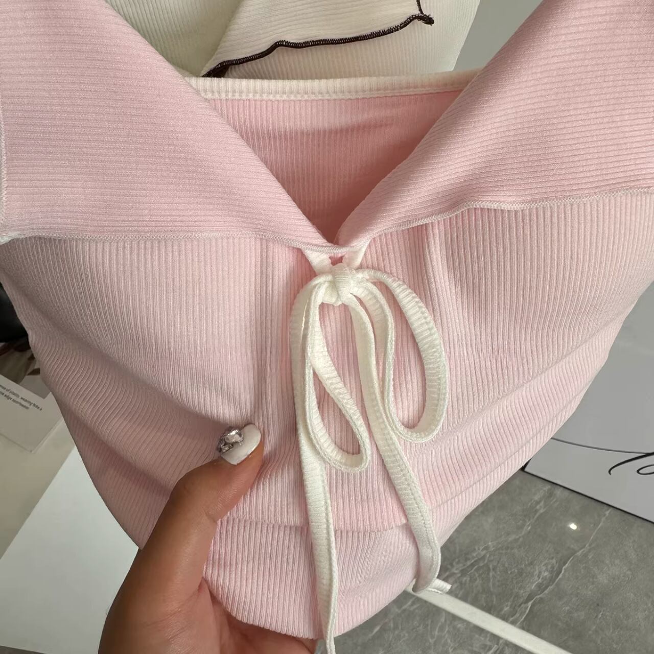 Bow Tie Ribbed Set【10color】2683