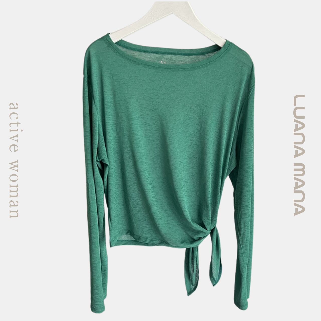 ウエストで結べるトップスは、スタイルアップと体温調整の両方に便利。