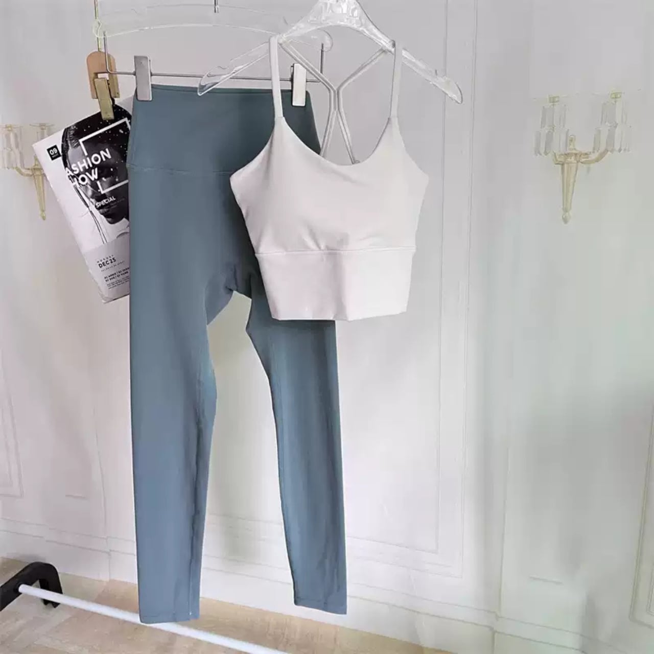 ブラとレギンスは落ち着いたトーンで、スタジオでも浮かない上品さ。