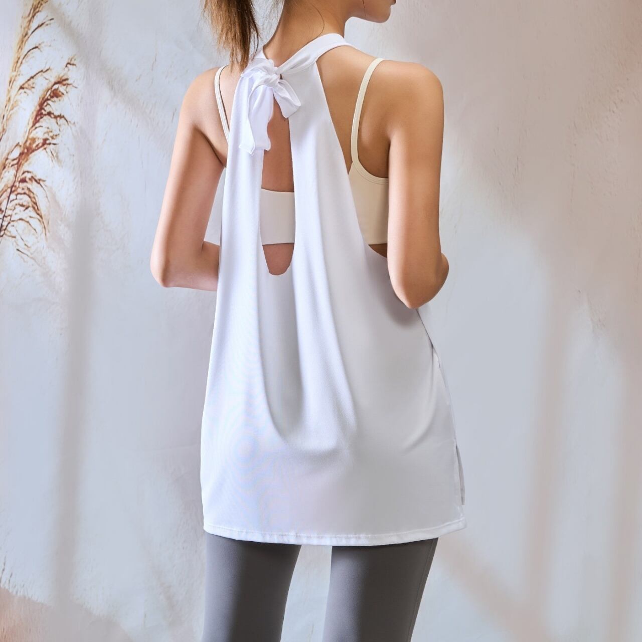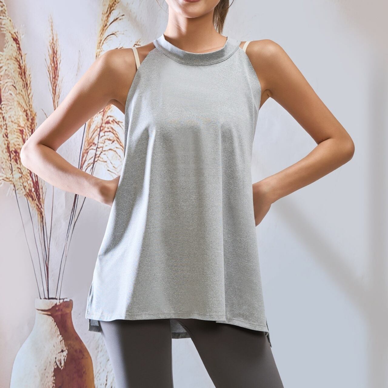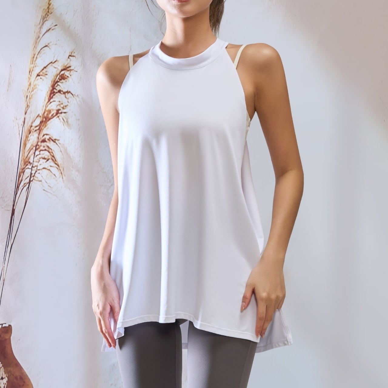 アシンメトリーな肩紐デザインと、ゆったりシルエットでどんな動きも快適。
