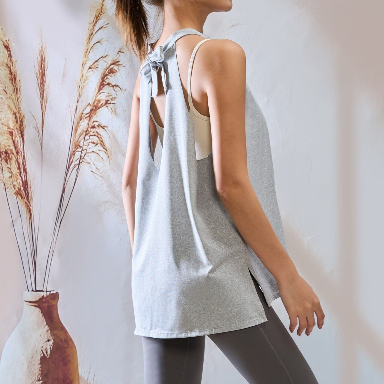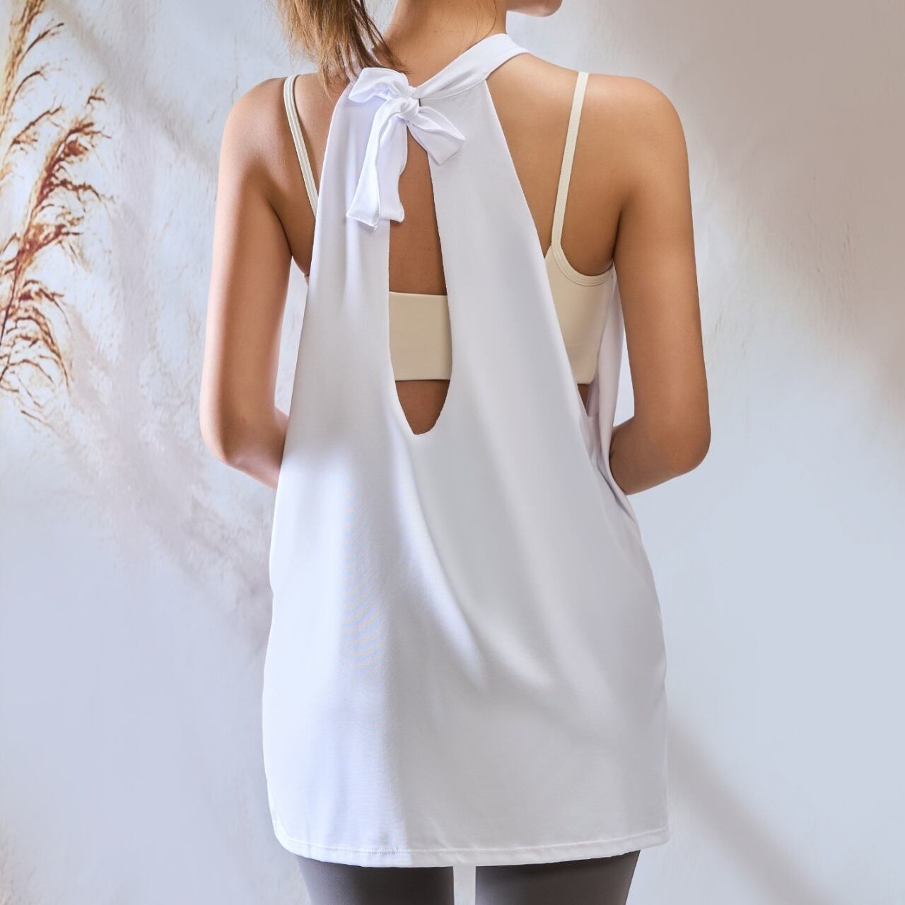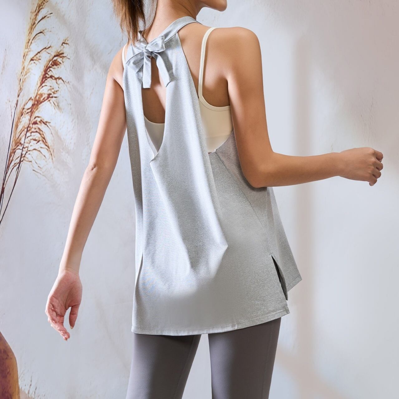アシンメトリーな肩紐デザインと、ゆったりシルエットでどんな動きも快適。
