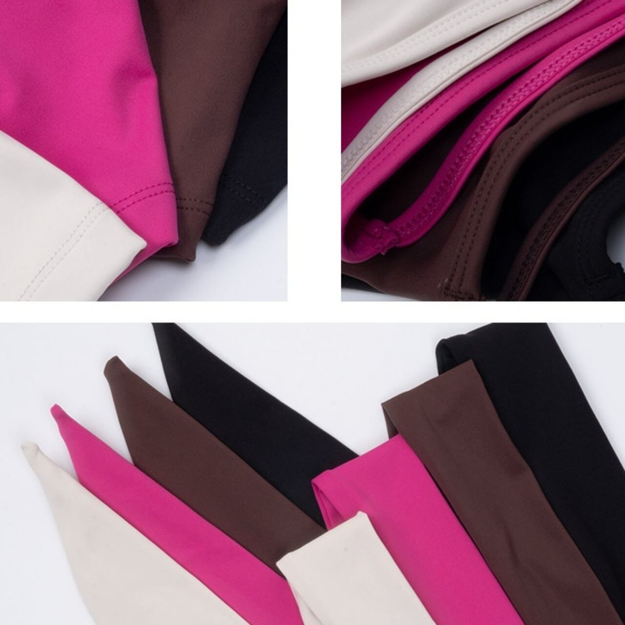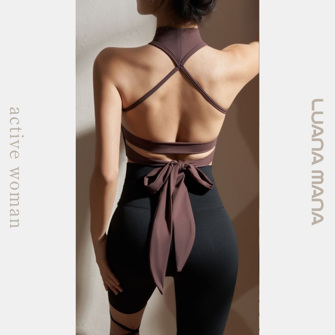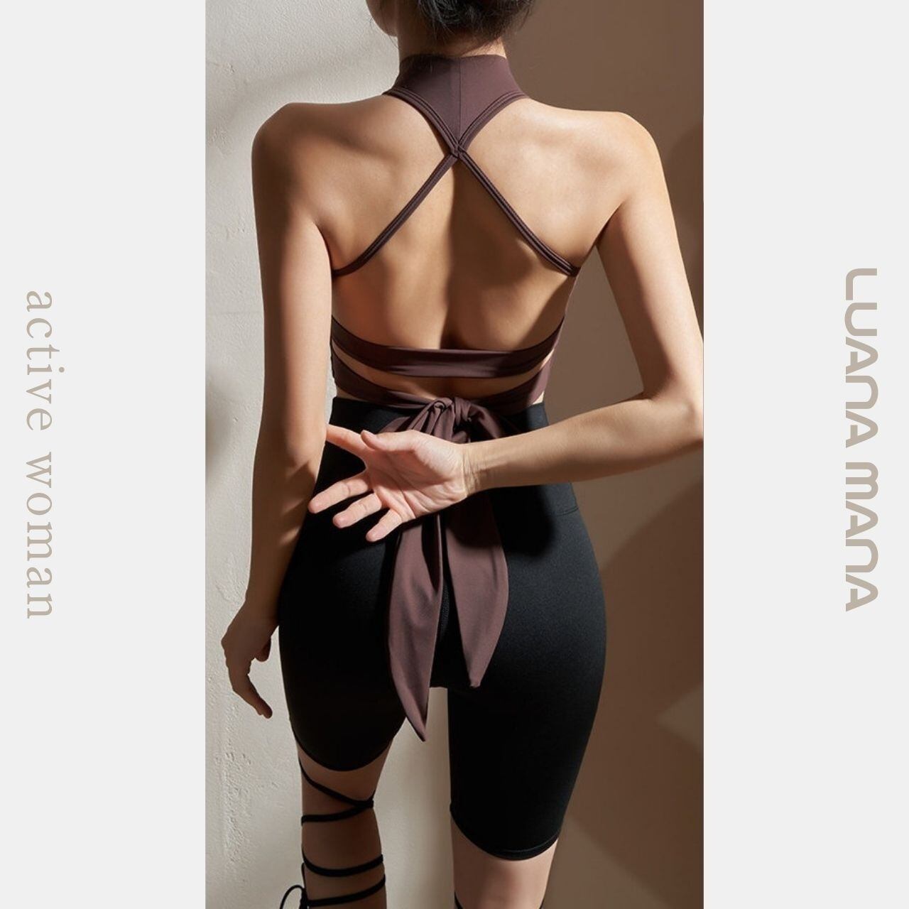 首元までしっかりホールドするハイネックデザインが、動きの多いヨガやワークアウトでも安定感をキープ。