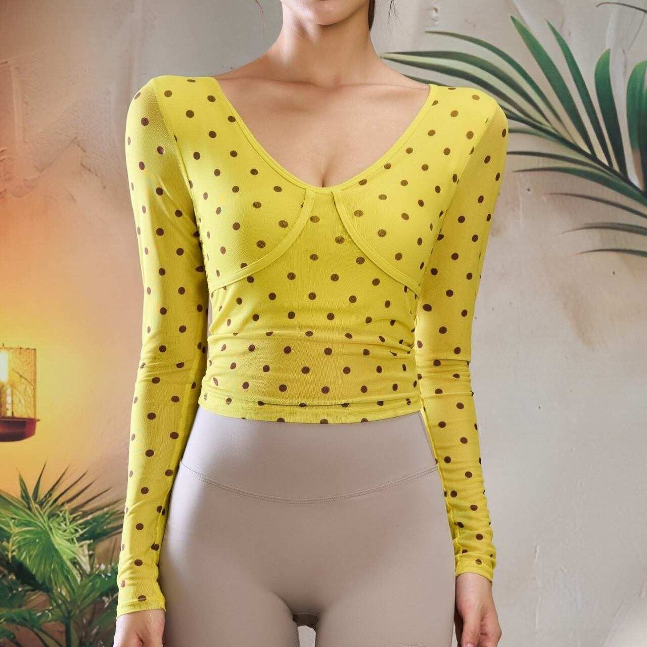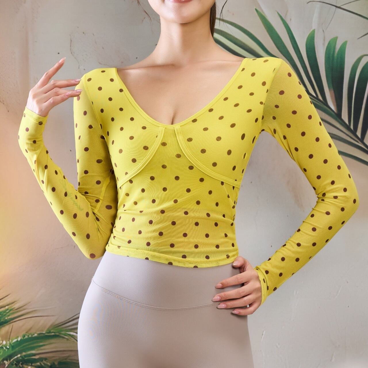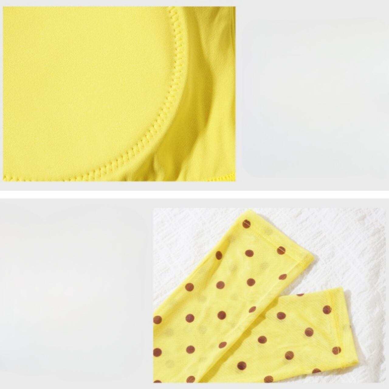 視線を引きつけるイエローベースにドット柄をあしらった一枚。