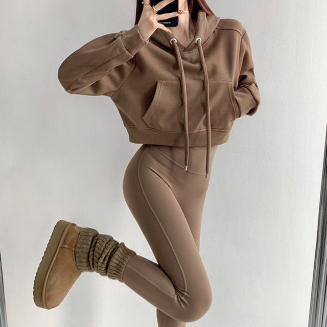 ウエスト位置が高く見える短め丈で、ハイウエストレギンスとの相性抜群。