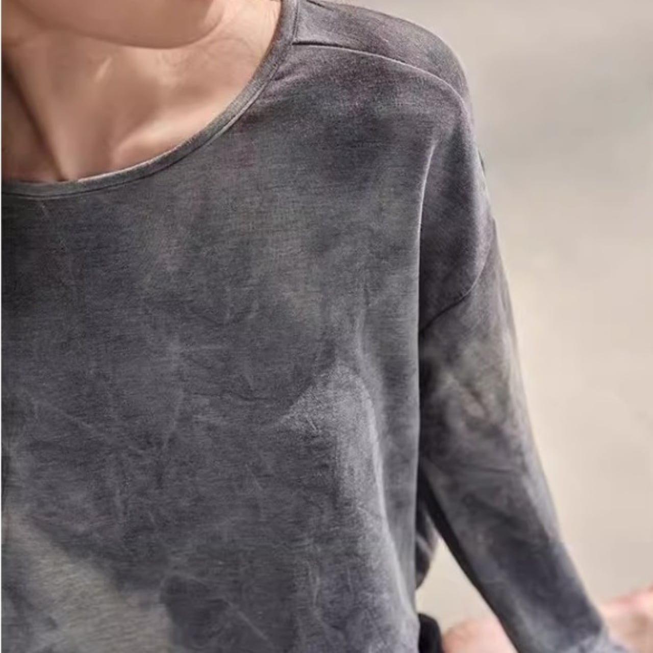 雲のようなニュアンスカラーが印象的な、リラックス感のあるタイダイロングTシャツ。