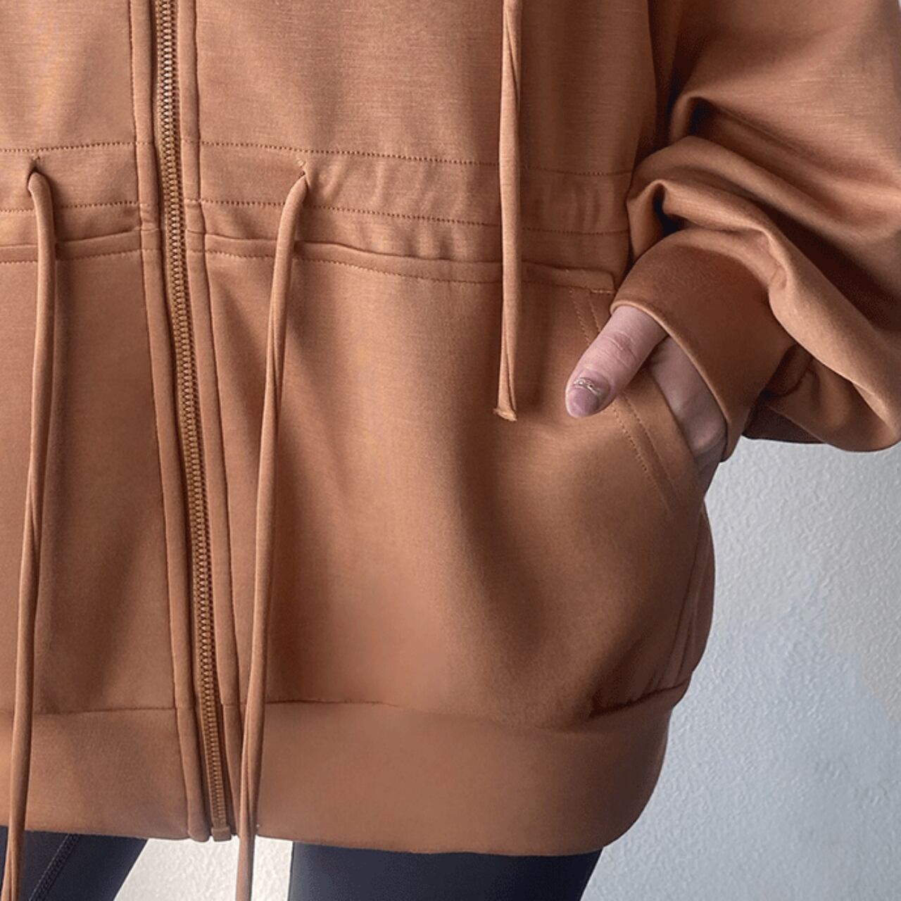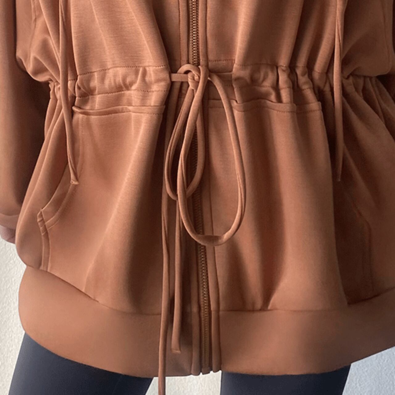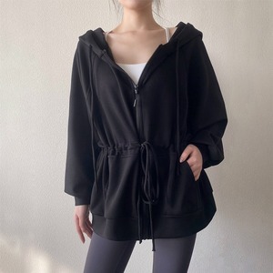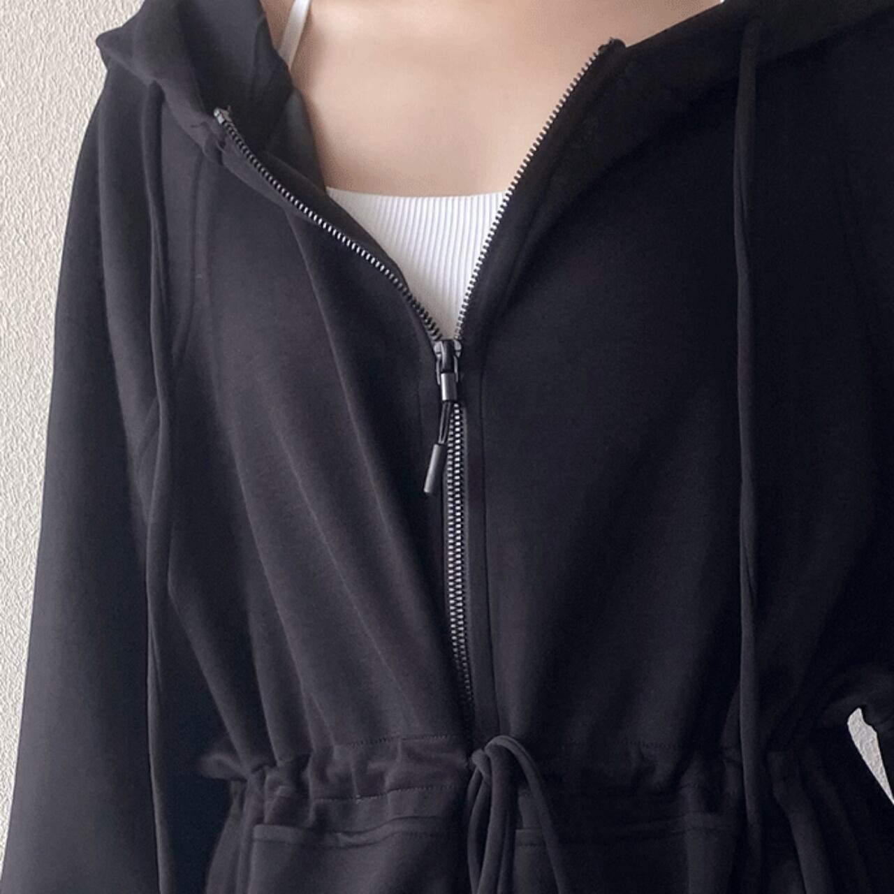 ウエストのドローストリングでシルエットが調整できる、技ありジップパーカー。