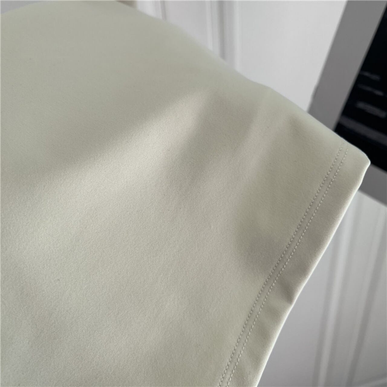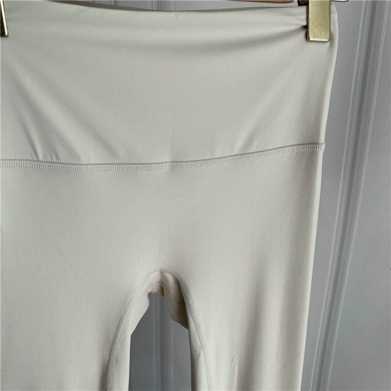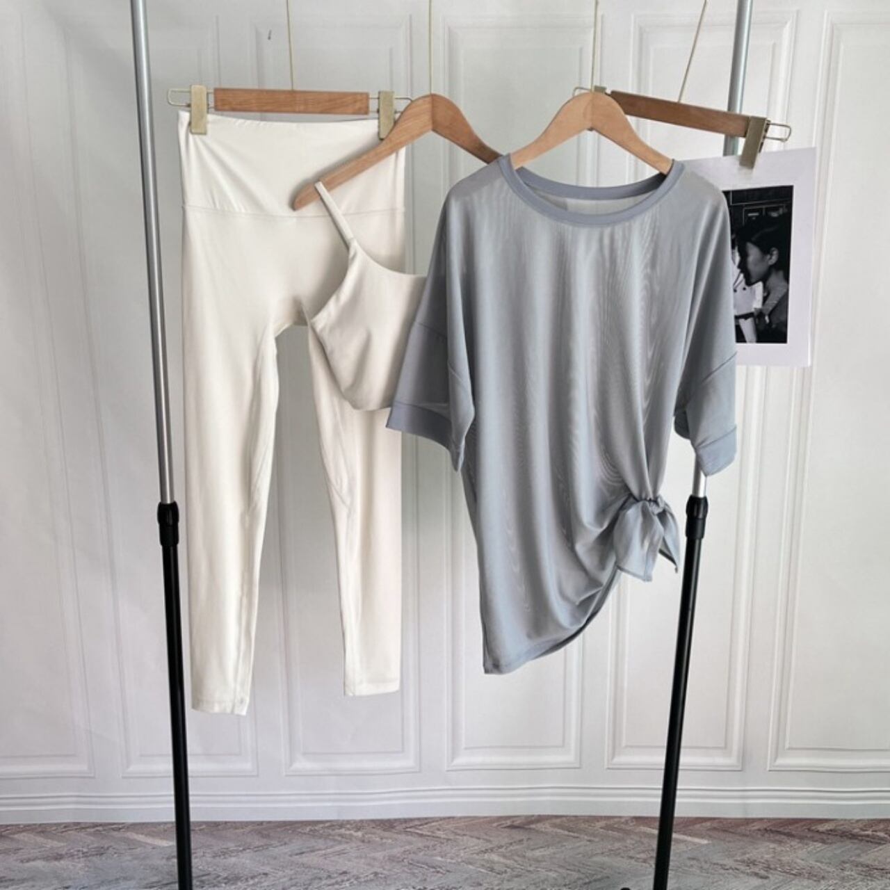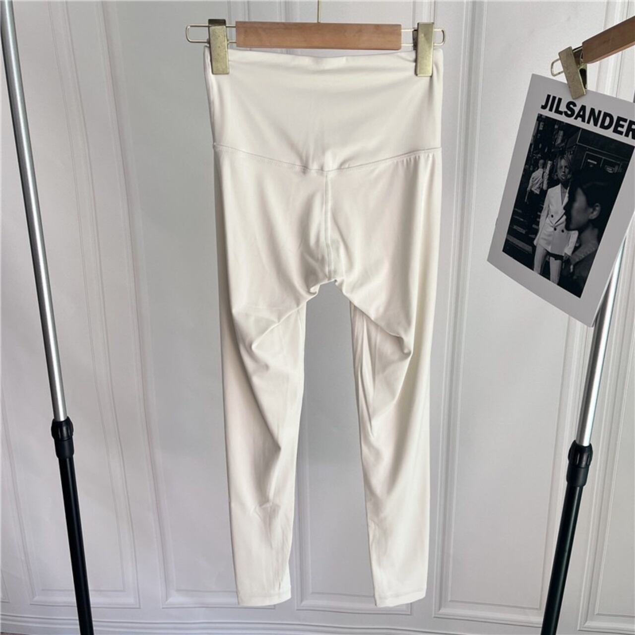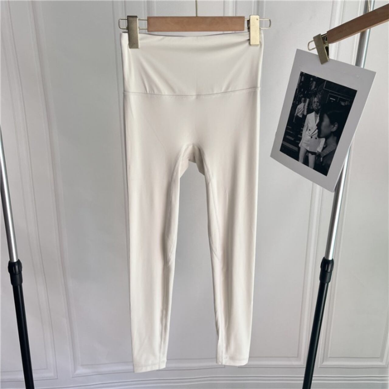 ホワイトのレギンスは脚線をまっすぐ見せるカッティングで、透明感のある優しい印象に仕上がります。