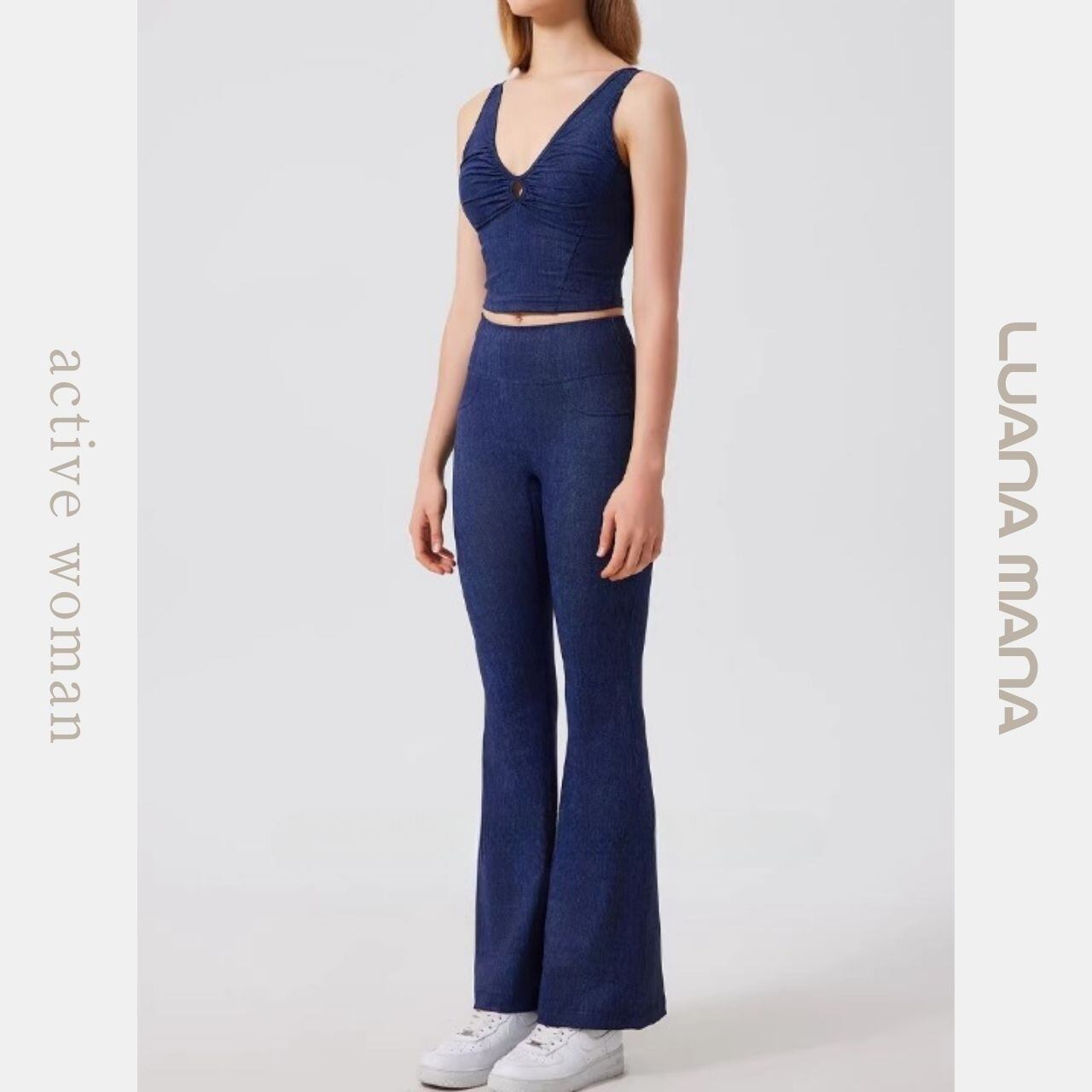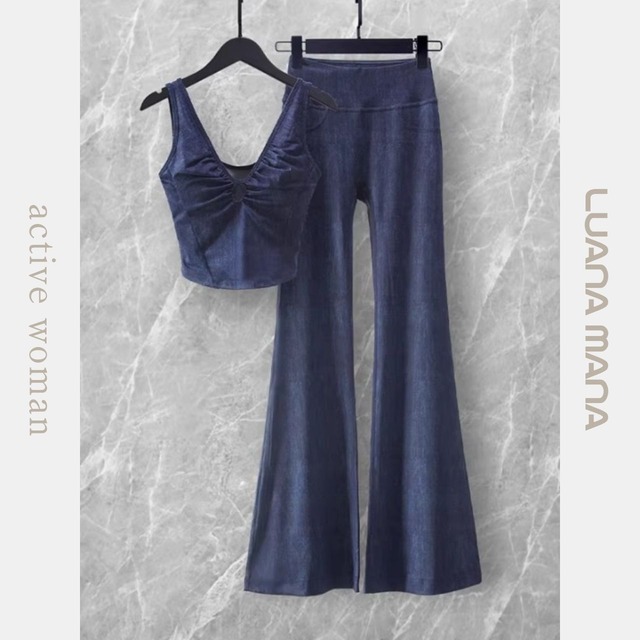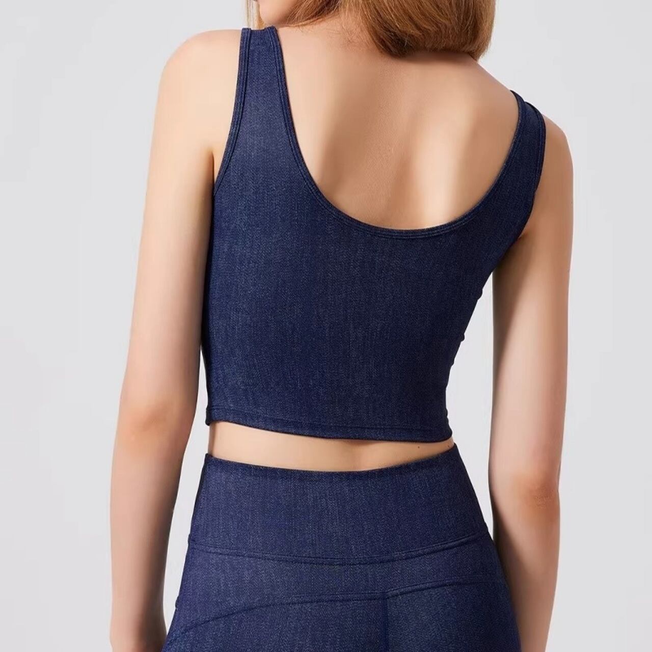 デニムの質感をまとった個性派アクティブブラ。