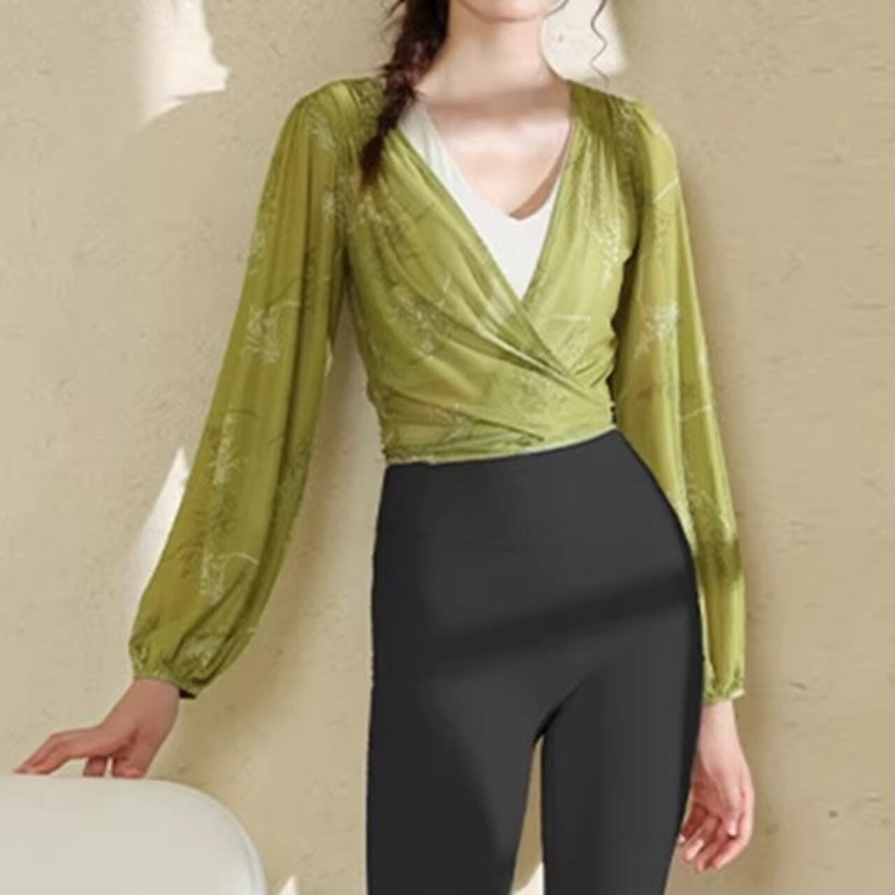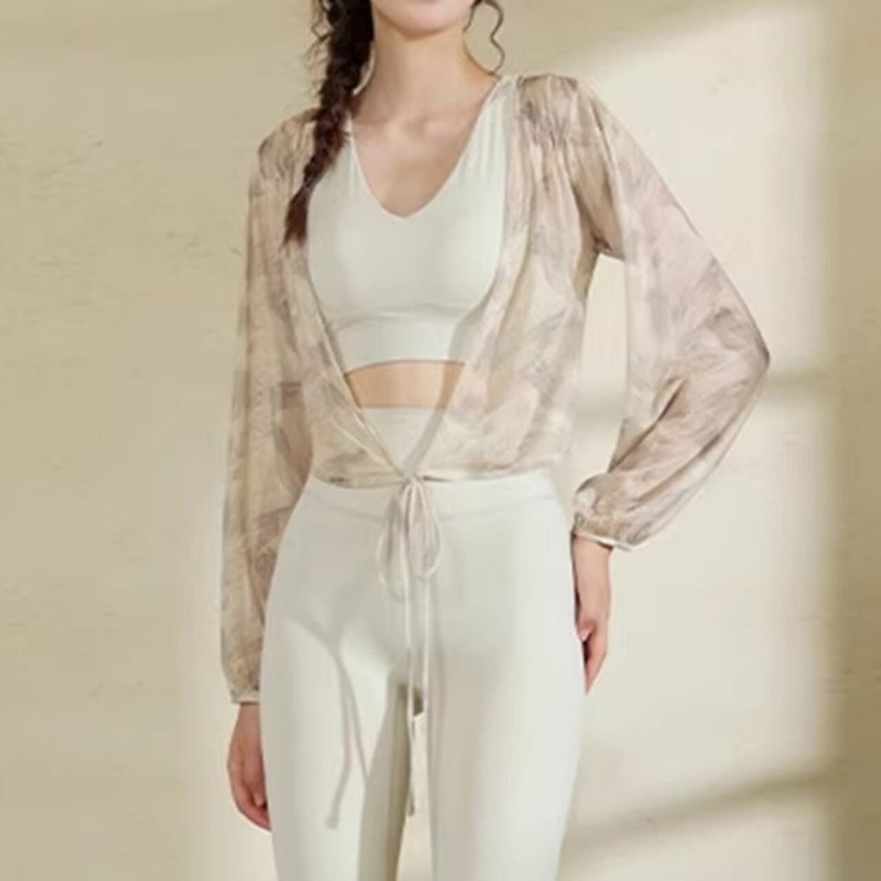 上品な和テイスト柄が大人の雰囲気を引き立て、レッスン前後の体温調整にも◎