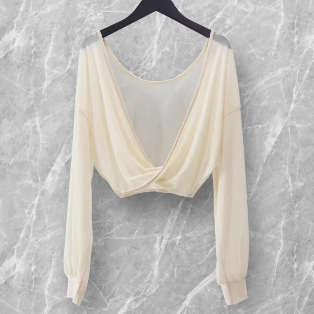 背中を美しく魅せるメッシュ×ツイストデザイン。