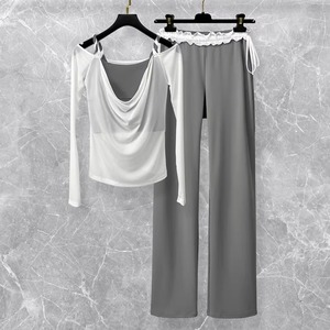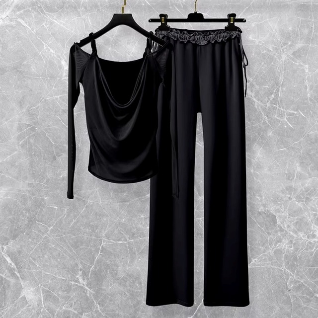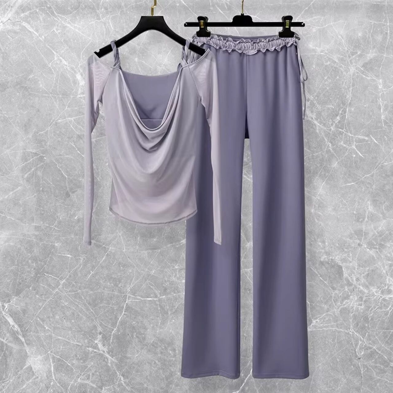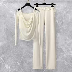 軽やかなドレープトップとワイドパンツが、身体をふわっと包むエレガントなセット。