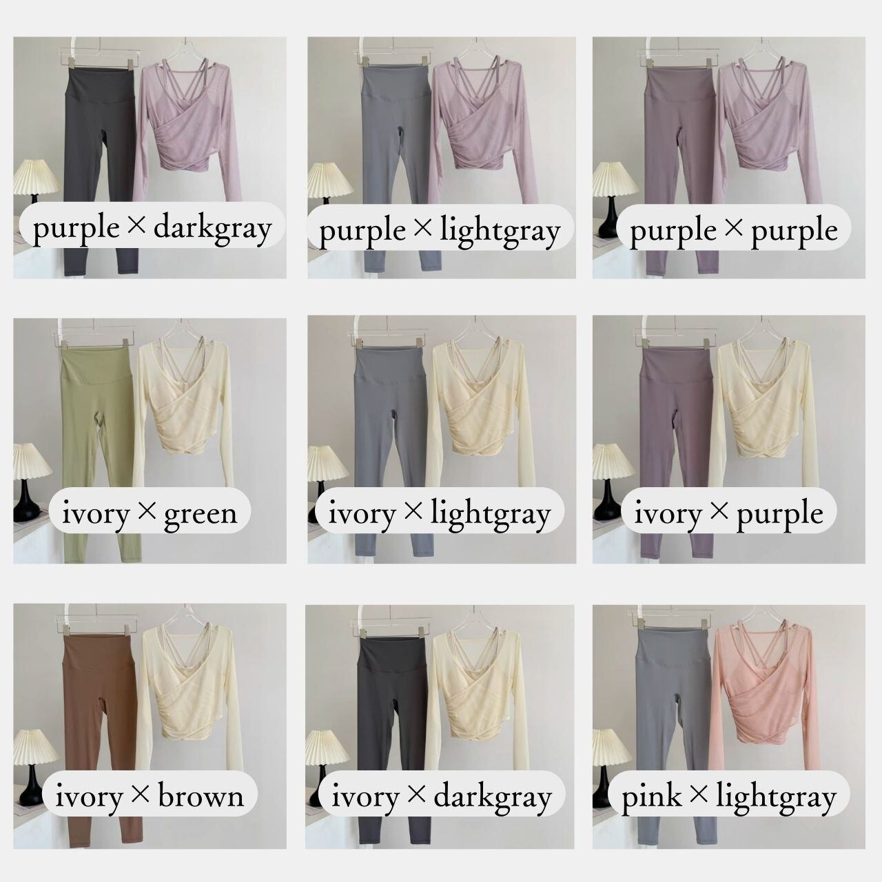 purple×dark gray/purple×light gray/purple×purple/ivory×green/ivory×light gray/ivory×purple/ivory×brown/ivory×dark gray/pink×light gray/pink×dark gray/light blue×khaki/light blue×dark gray/black×black