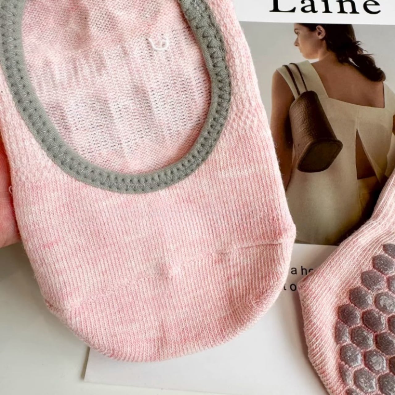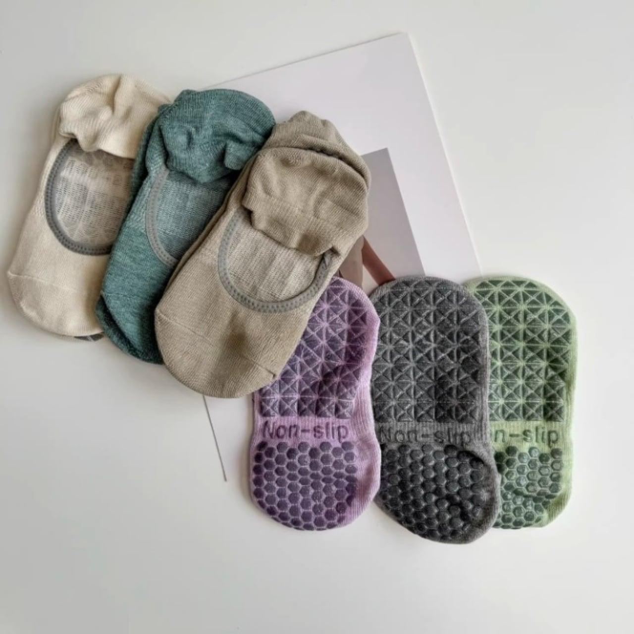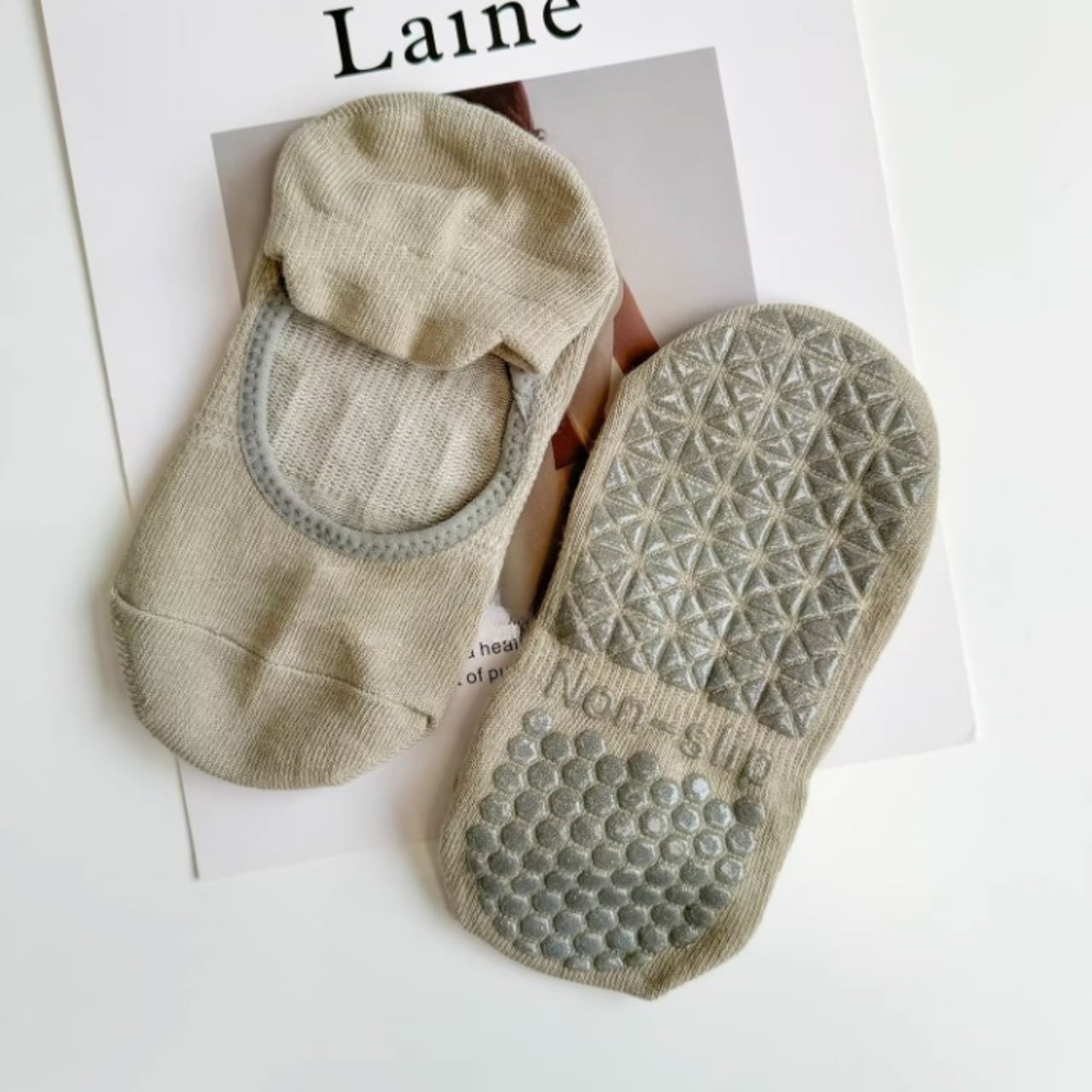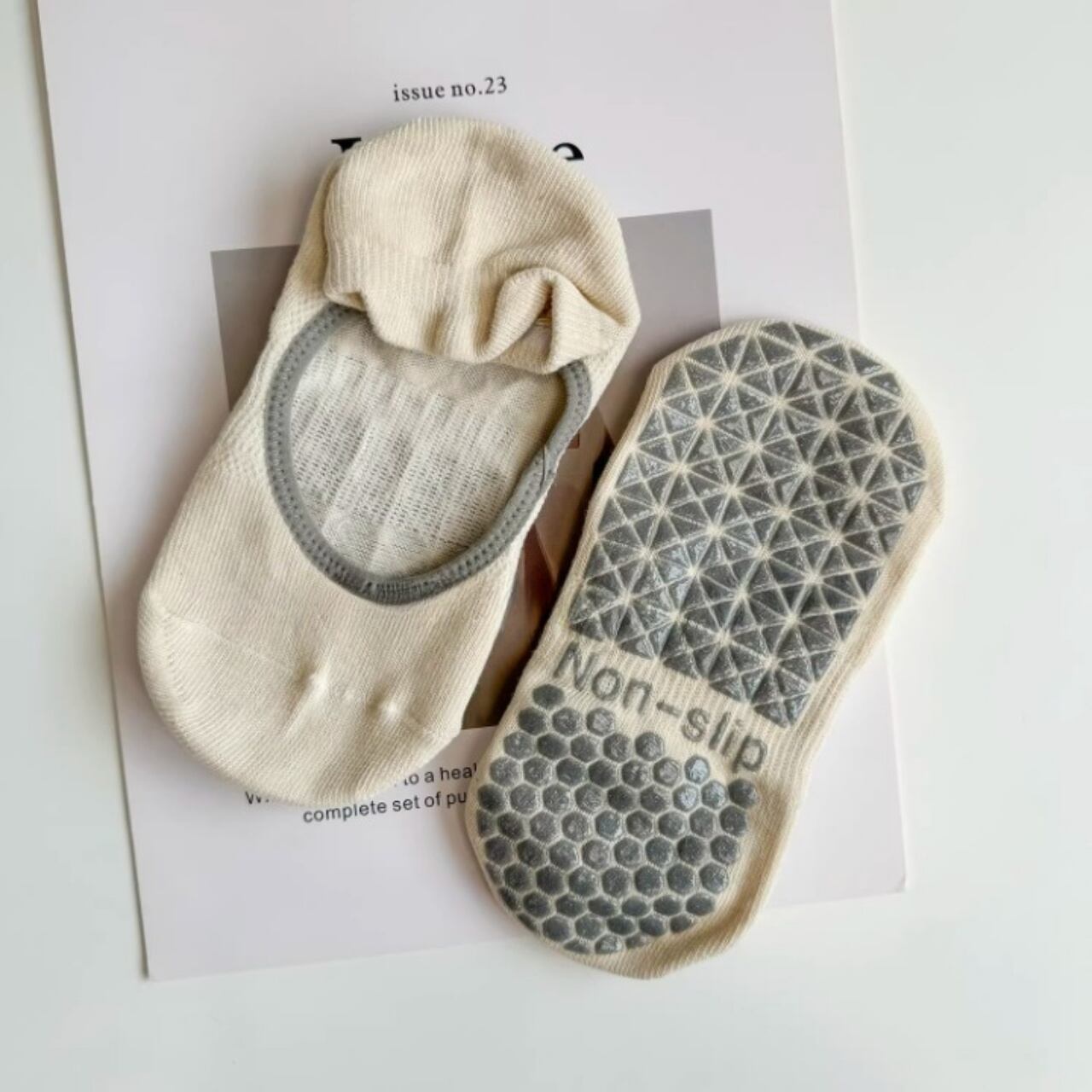 ナチュラルカラーが可愛い、滑り止め付きヨガソックス。