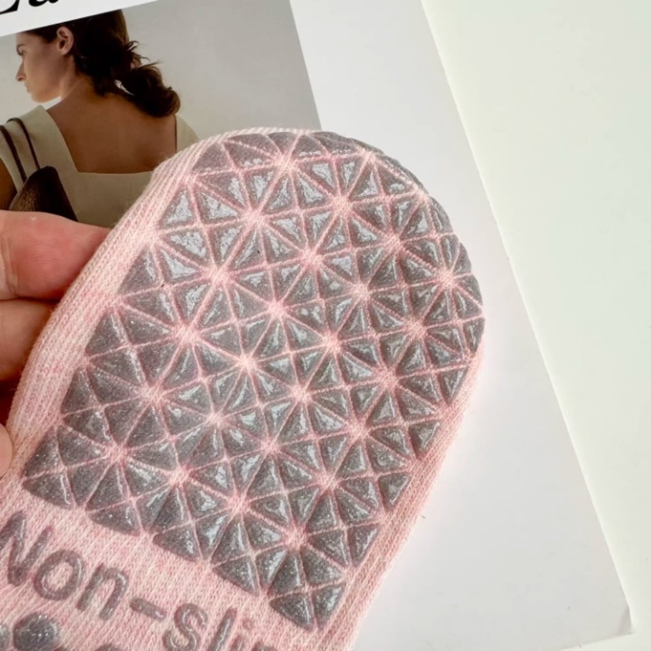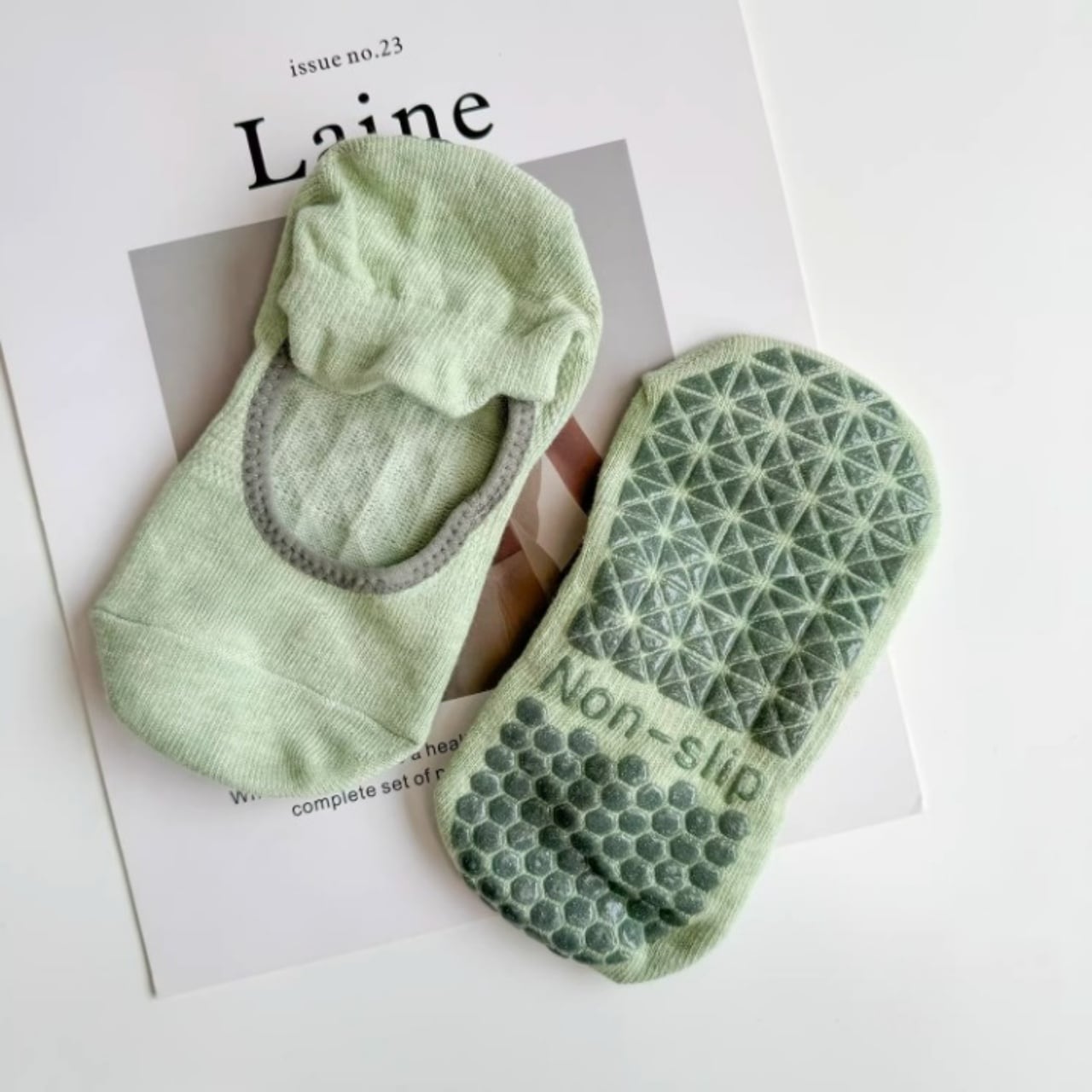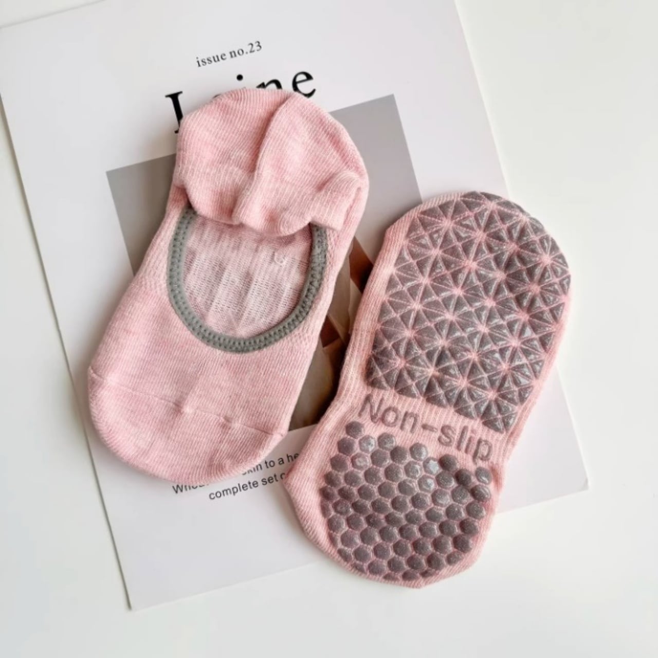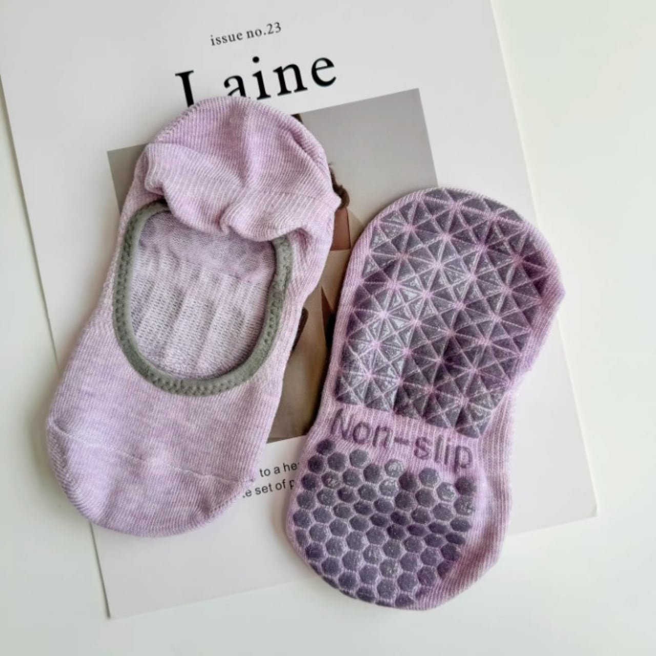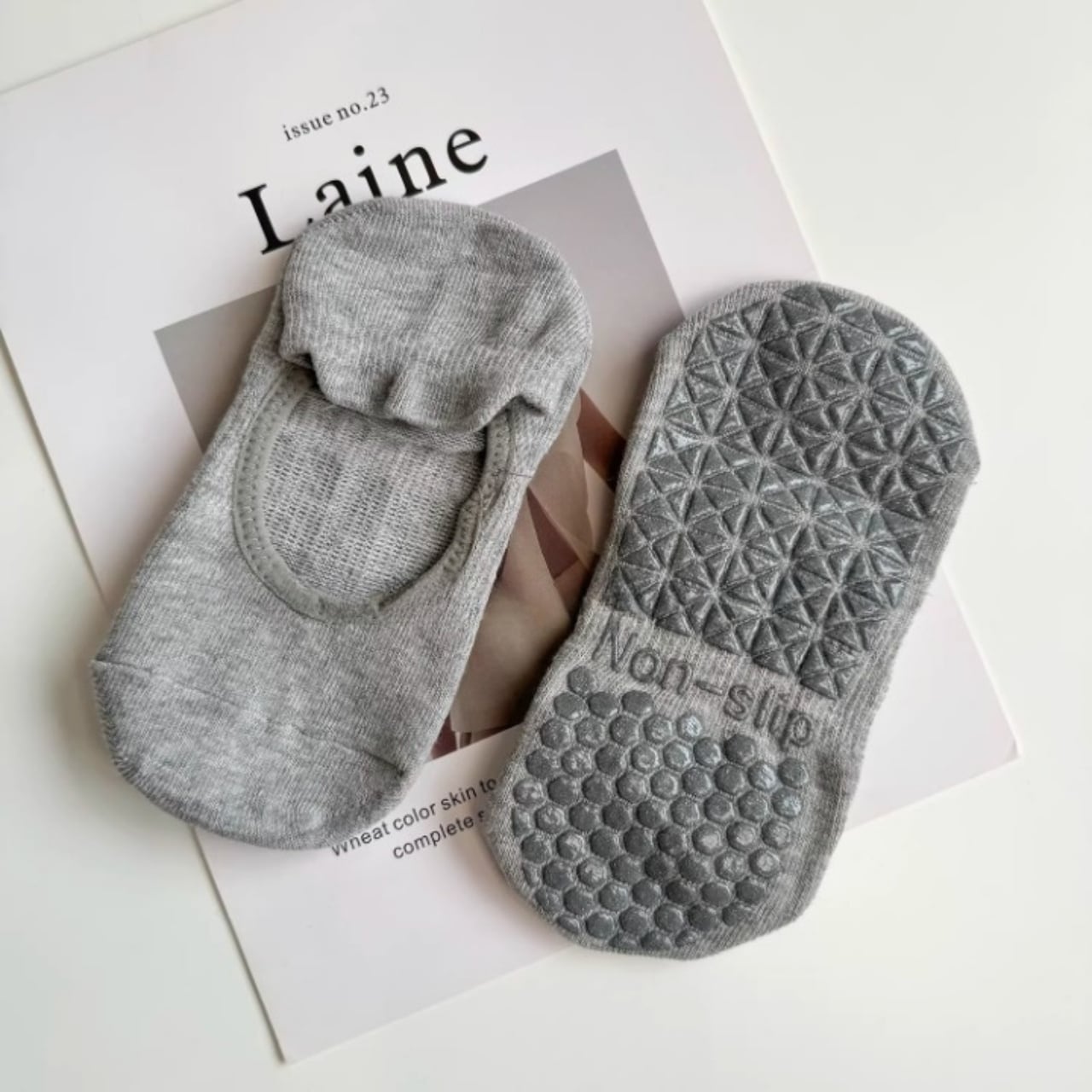 ナチュラルカラーが可愛い、滑り止め付きヨガソックス。