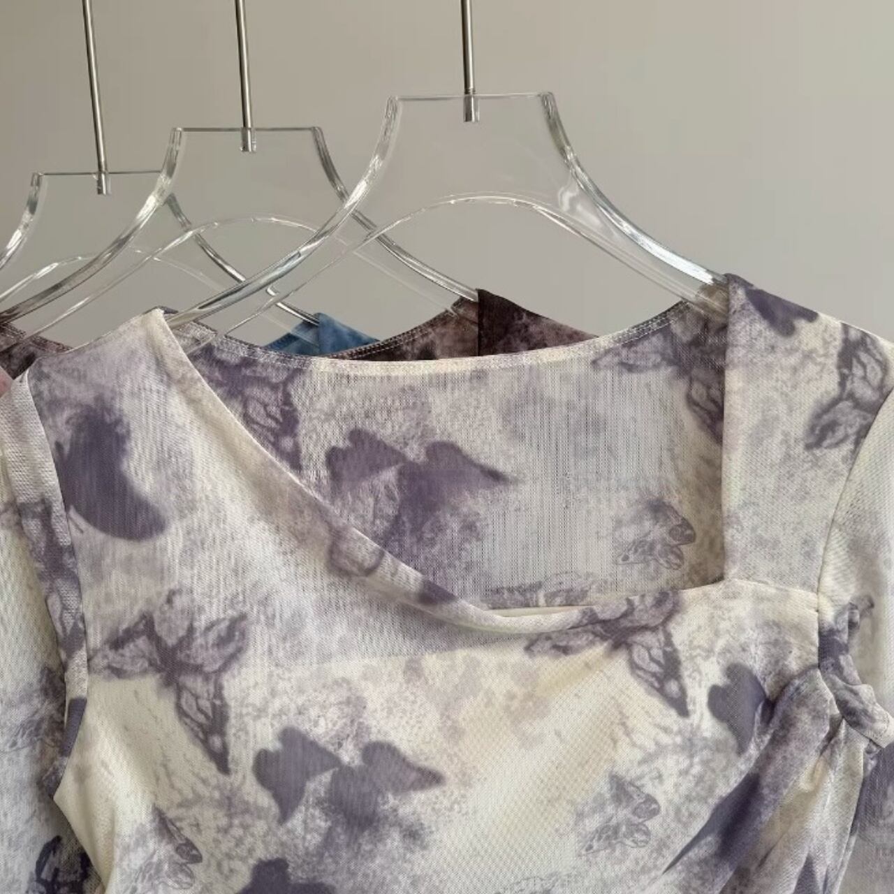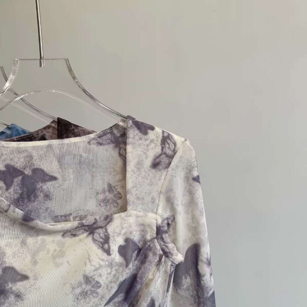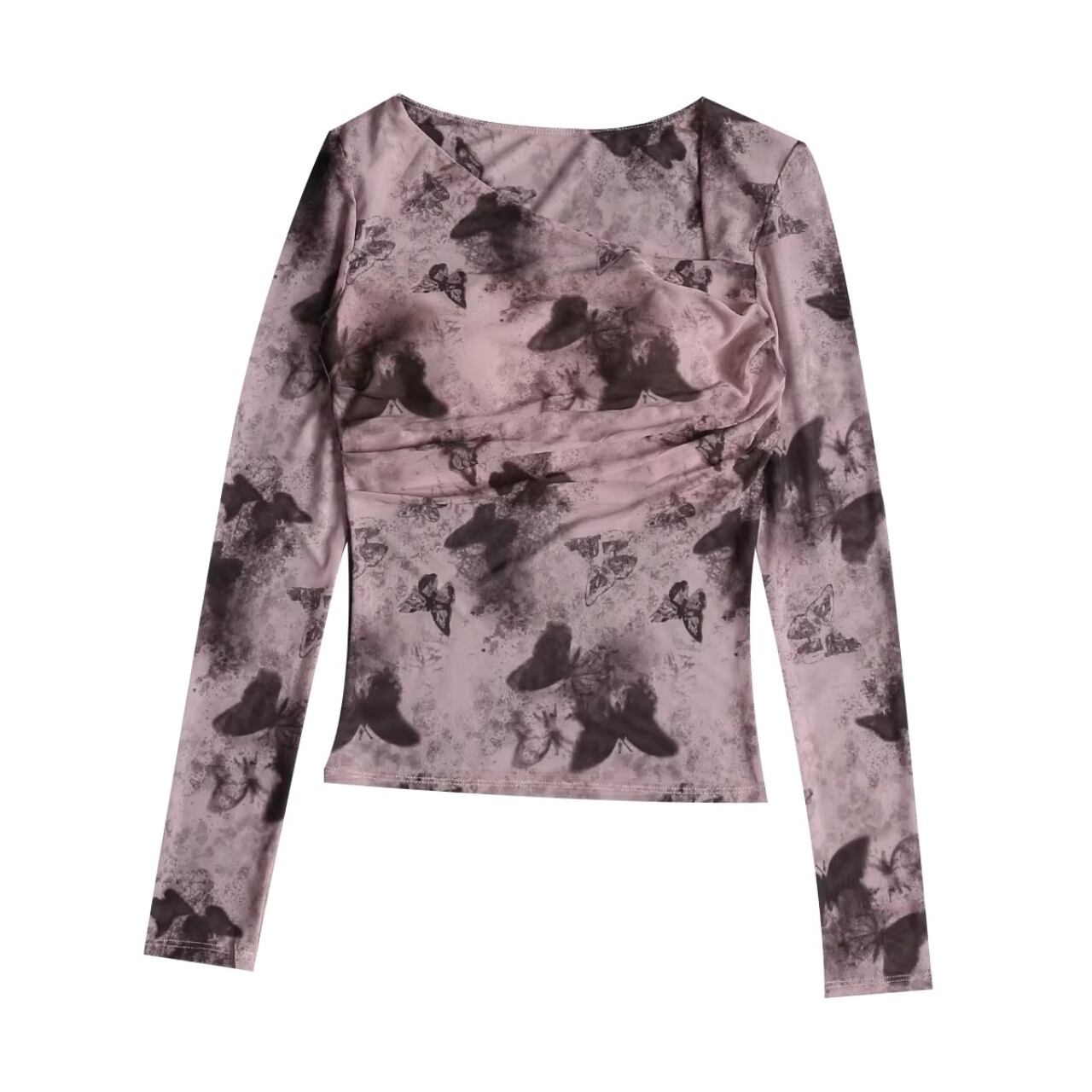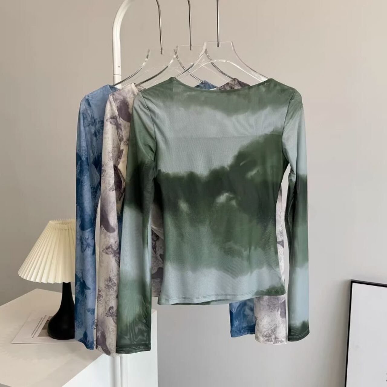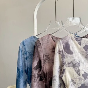 淡いアート柄メッシュが肌を美しく見せるロングスリーブ。