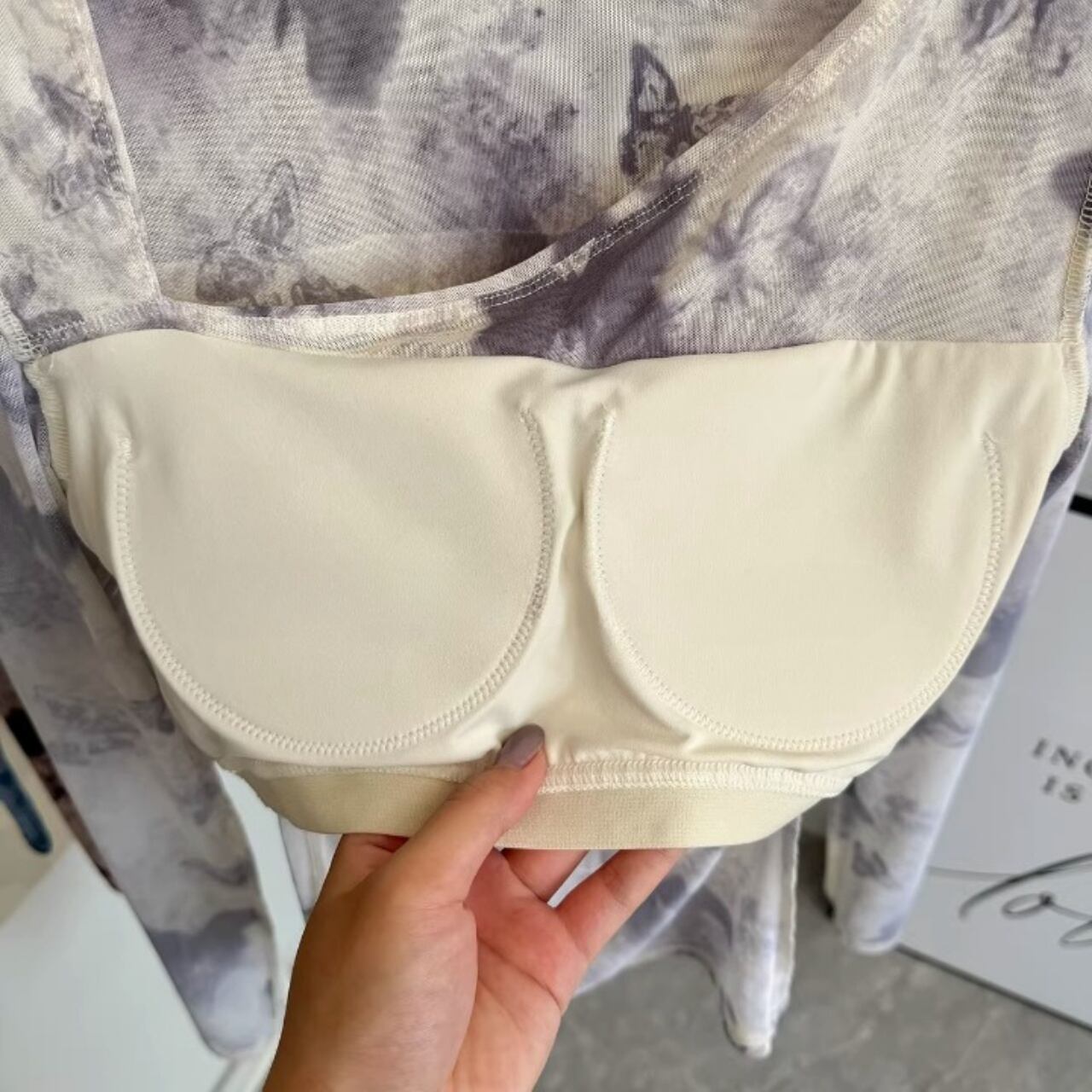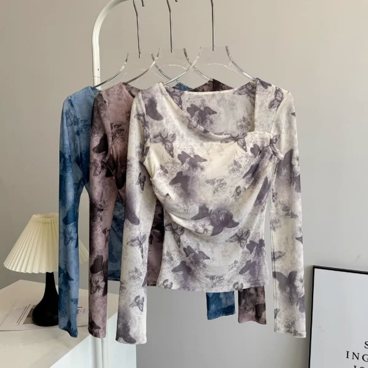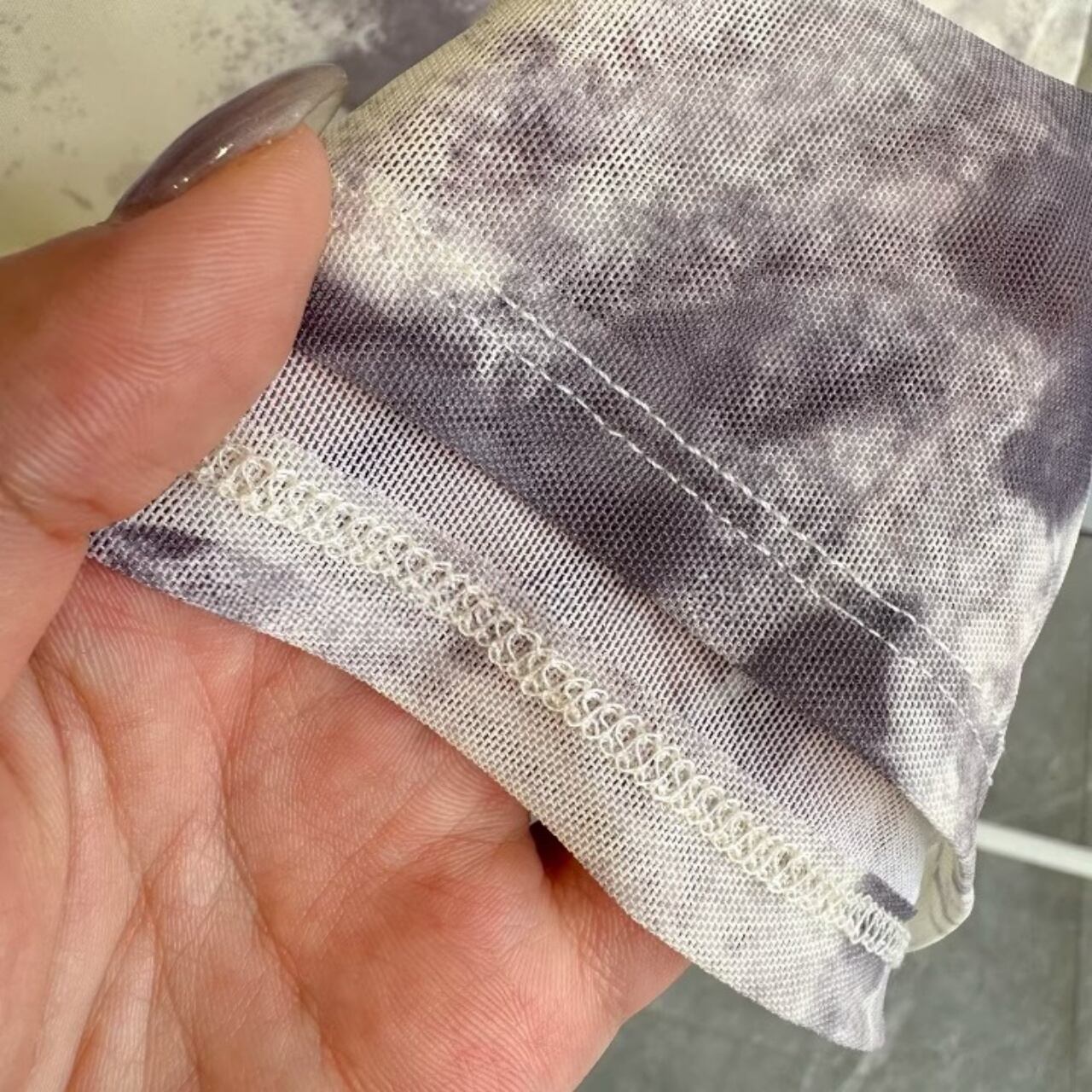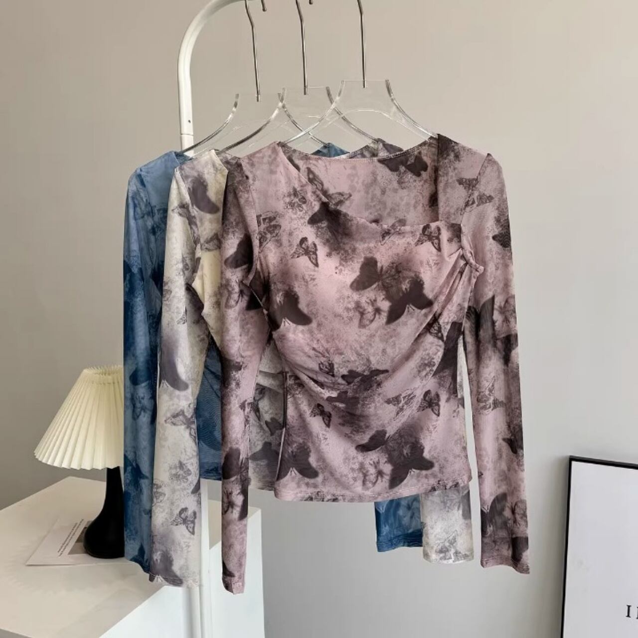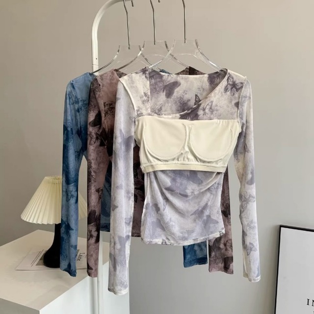 淡いアート柄メッシュが肌を美しく見せるロングスリーブ。