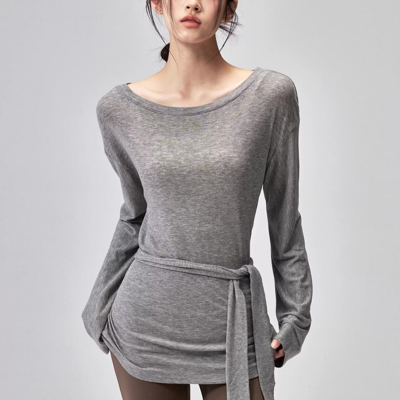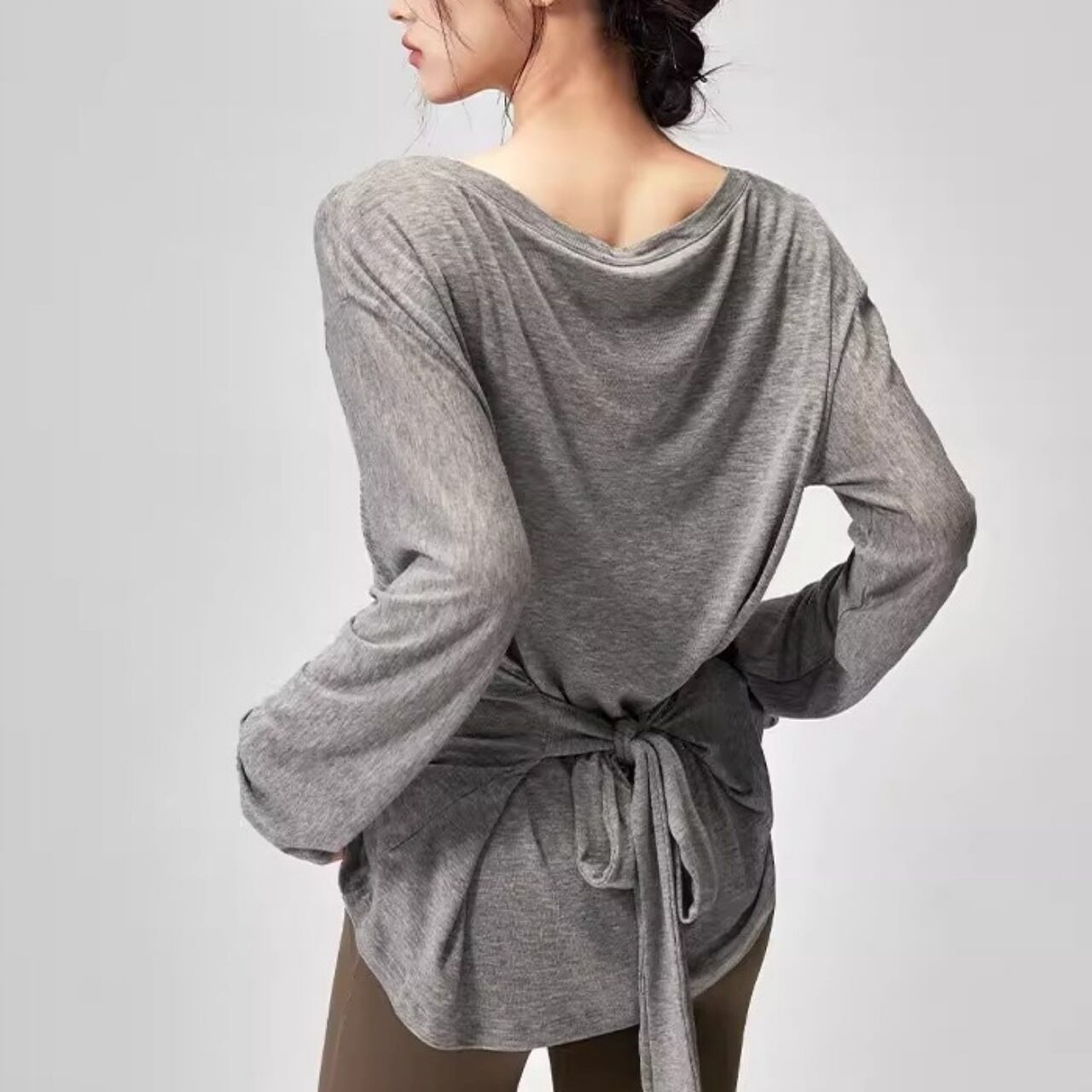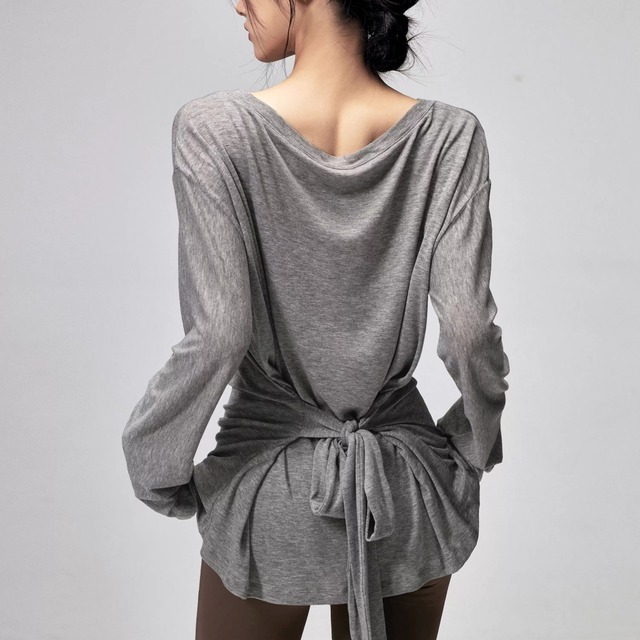 肌に吸い付くような柔らか素材で、レッスン前後の羽織りにも◎。