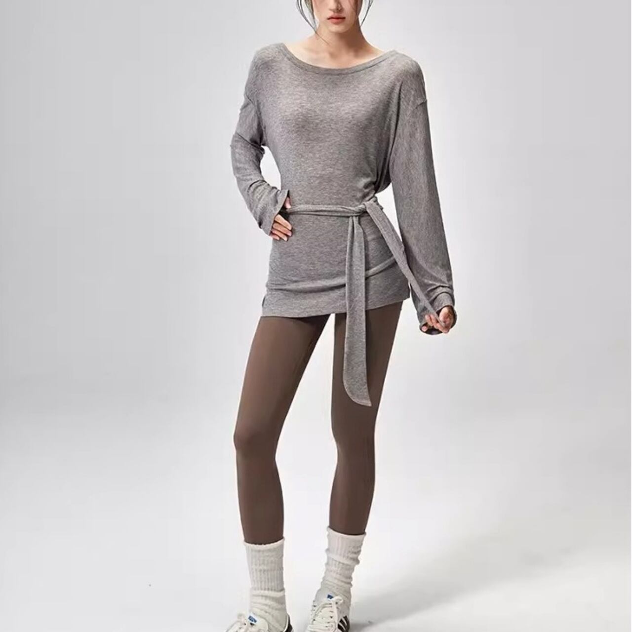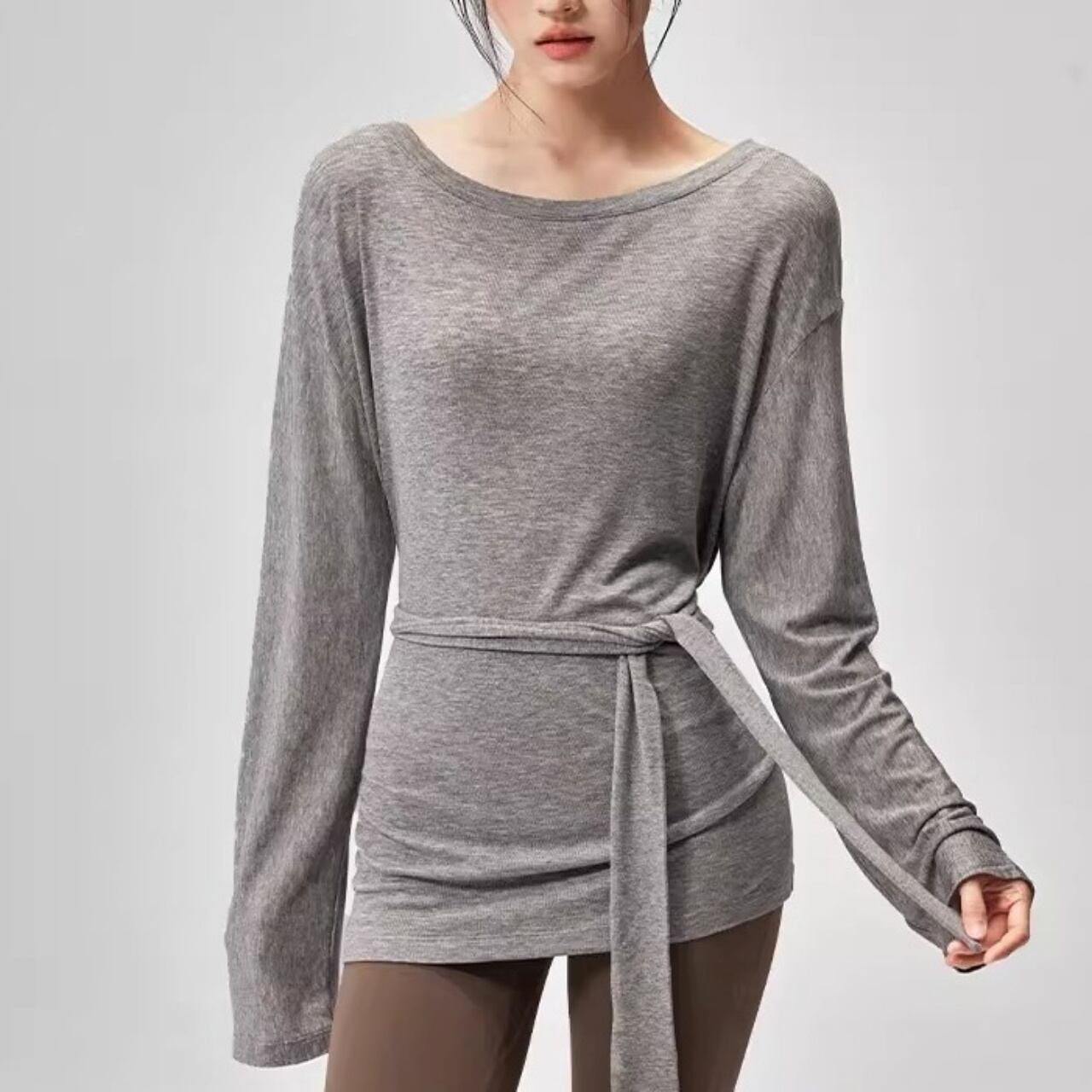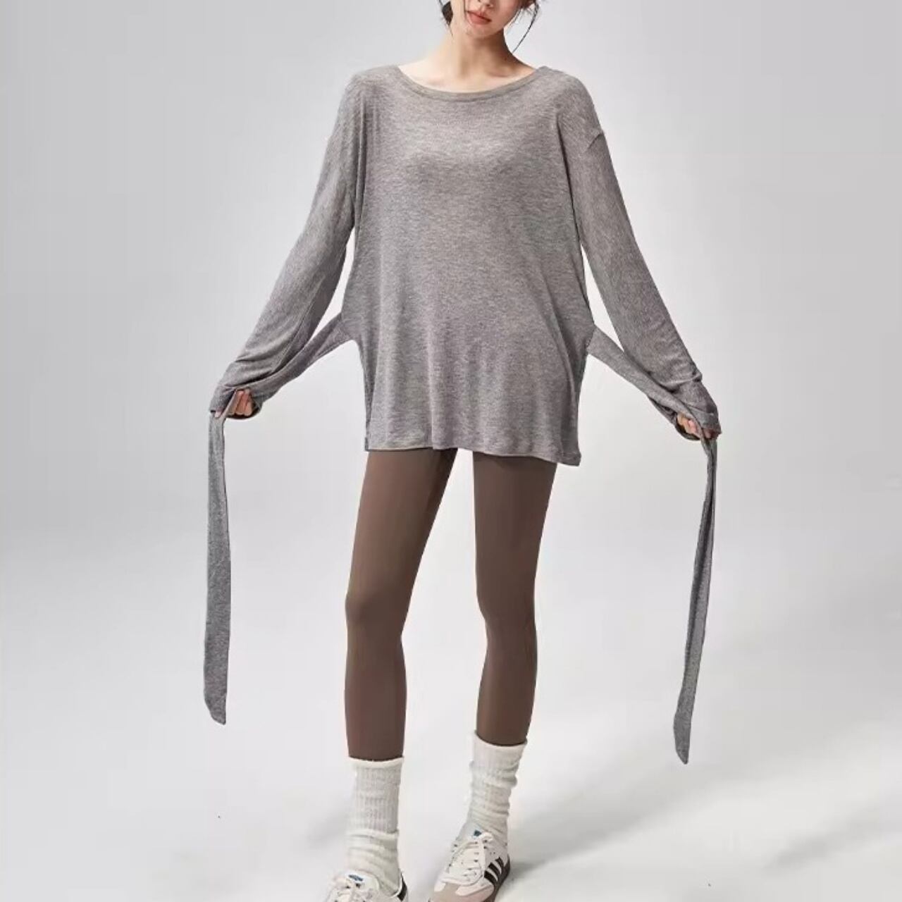 肌に吸い付くような柔らか素材で、レッスン前後の羽織りにも◎。