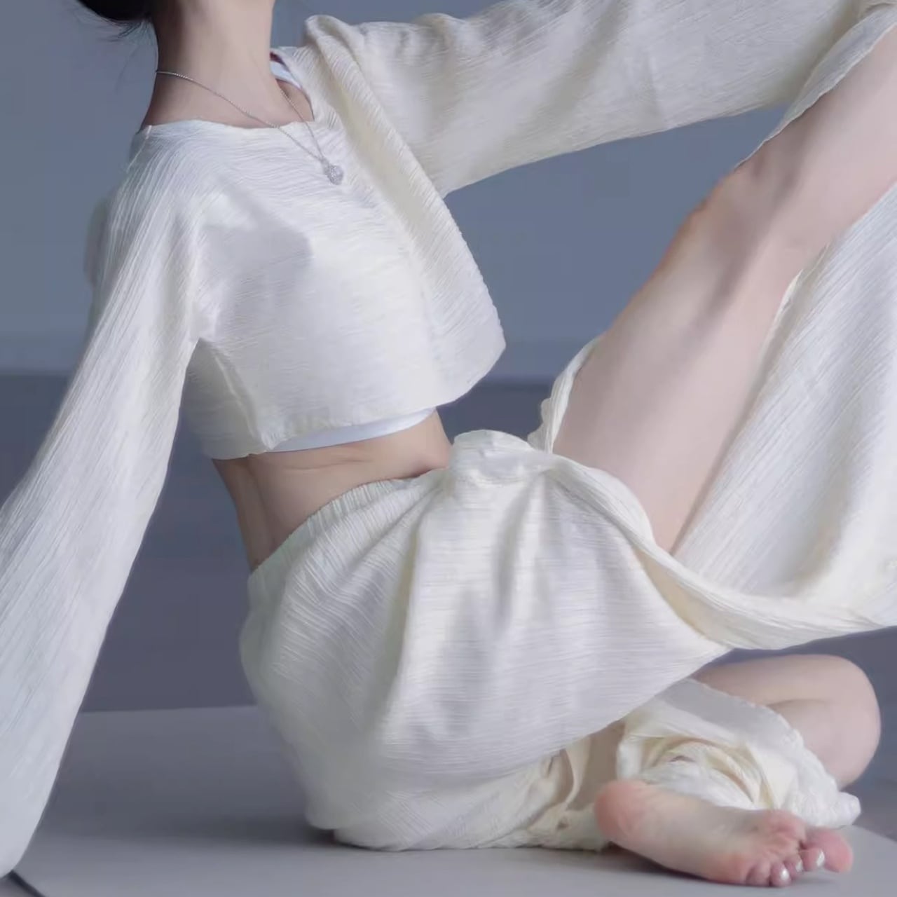 動きのたびにふわりと揺れ、ヨガのポーズをより美しく演出。