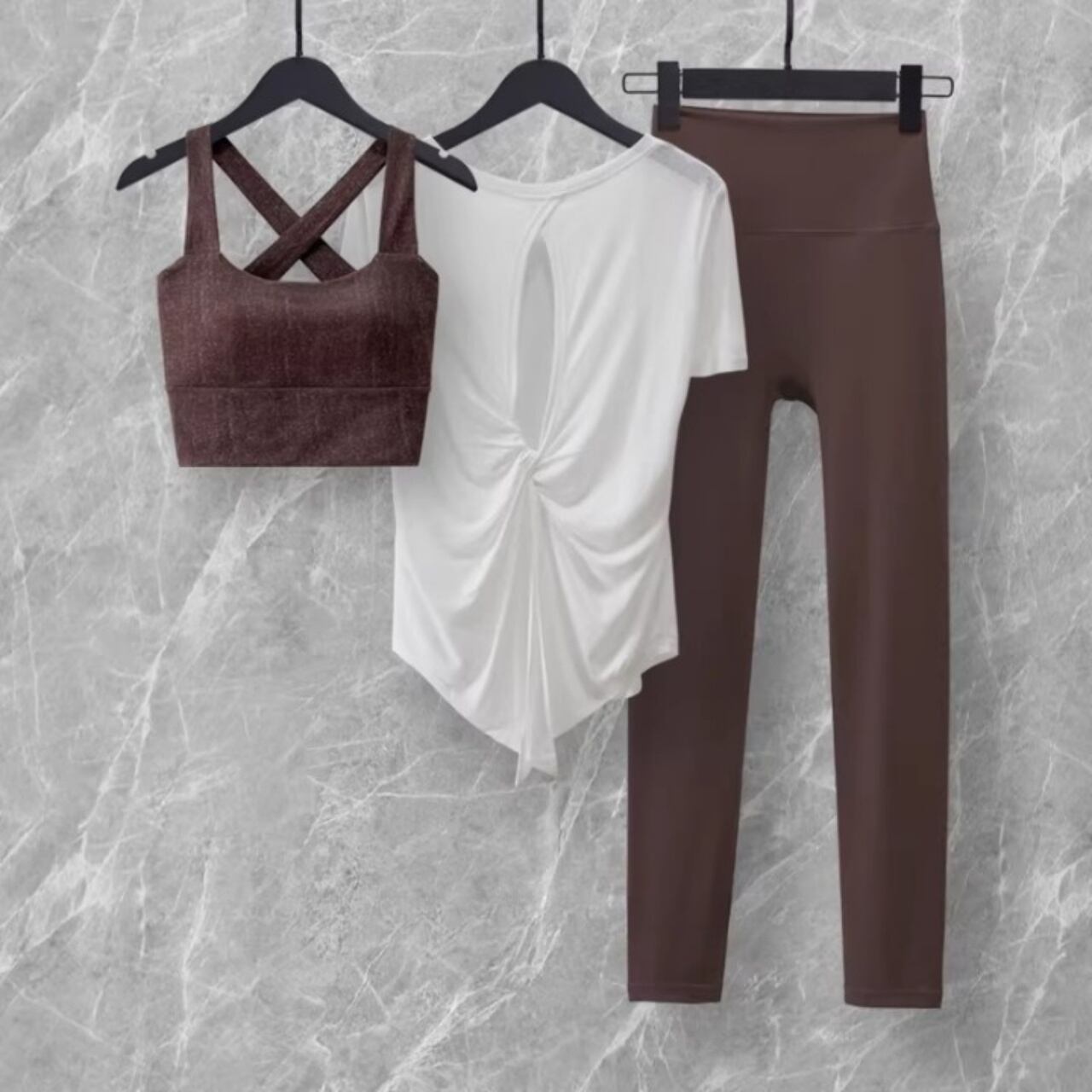 Cross Bra & Twist Back Tee Set【3colors】2769