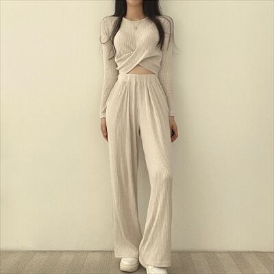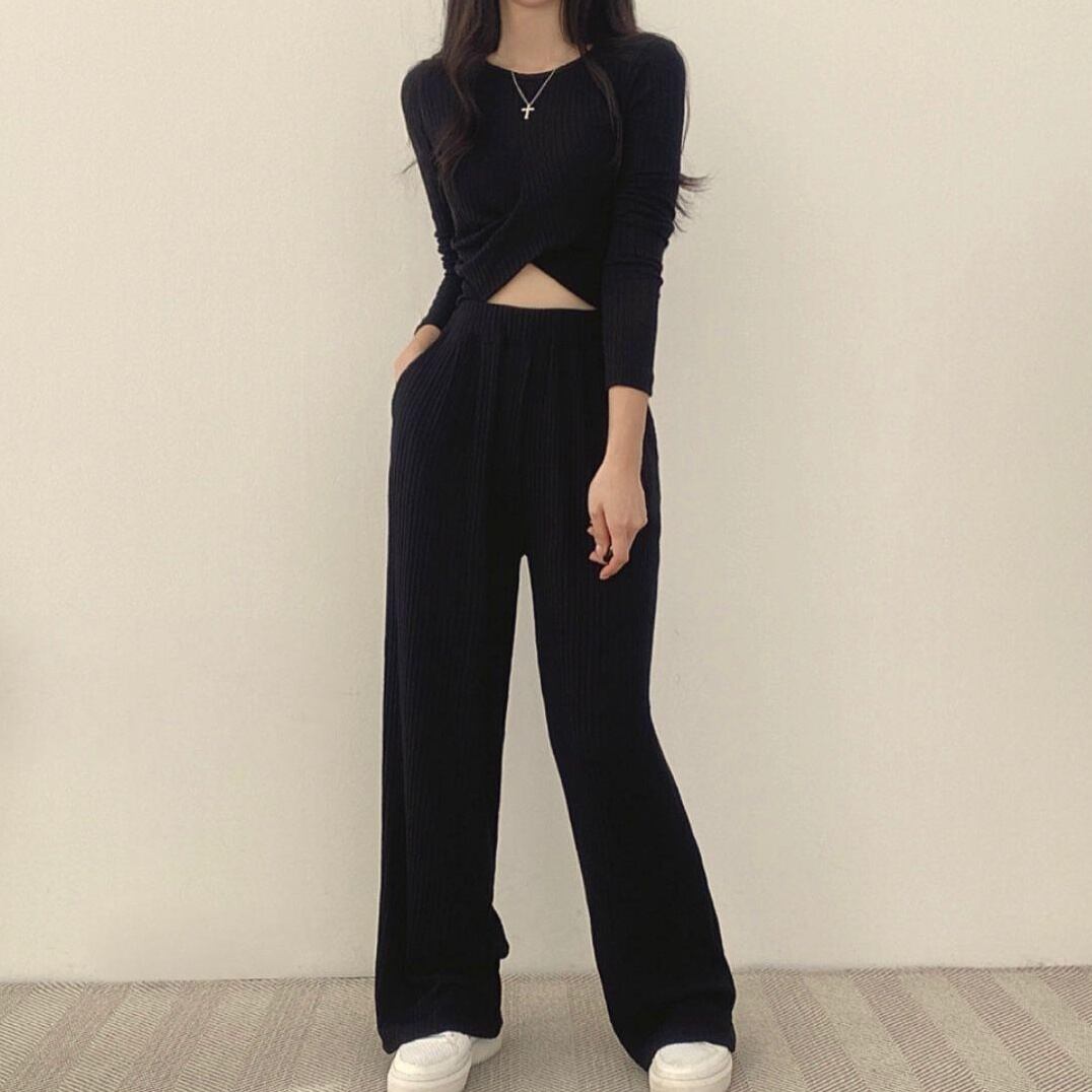 cross waist rib knit set up【2colors】 1248