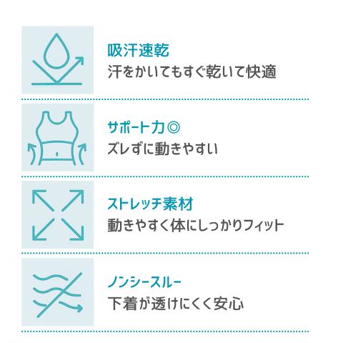 レイヤーのブラトップやウエストをすっきりと見せるレギンスが特長です。