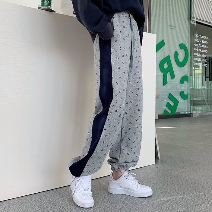 smiley print sports pants 2359